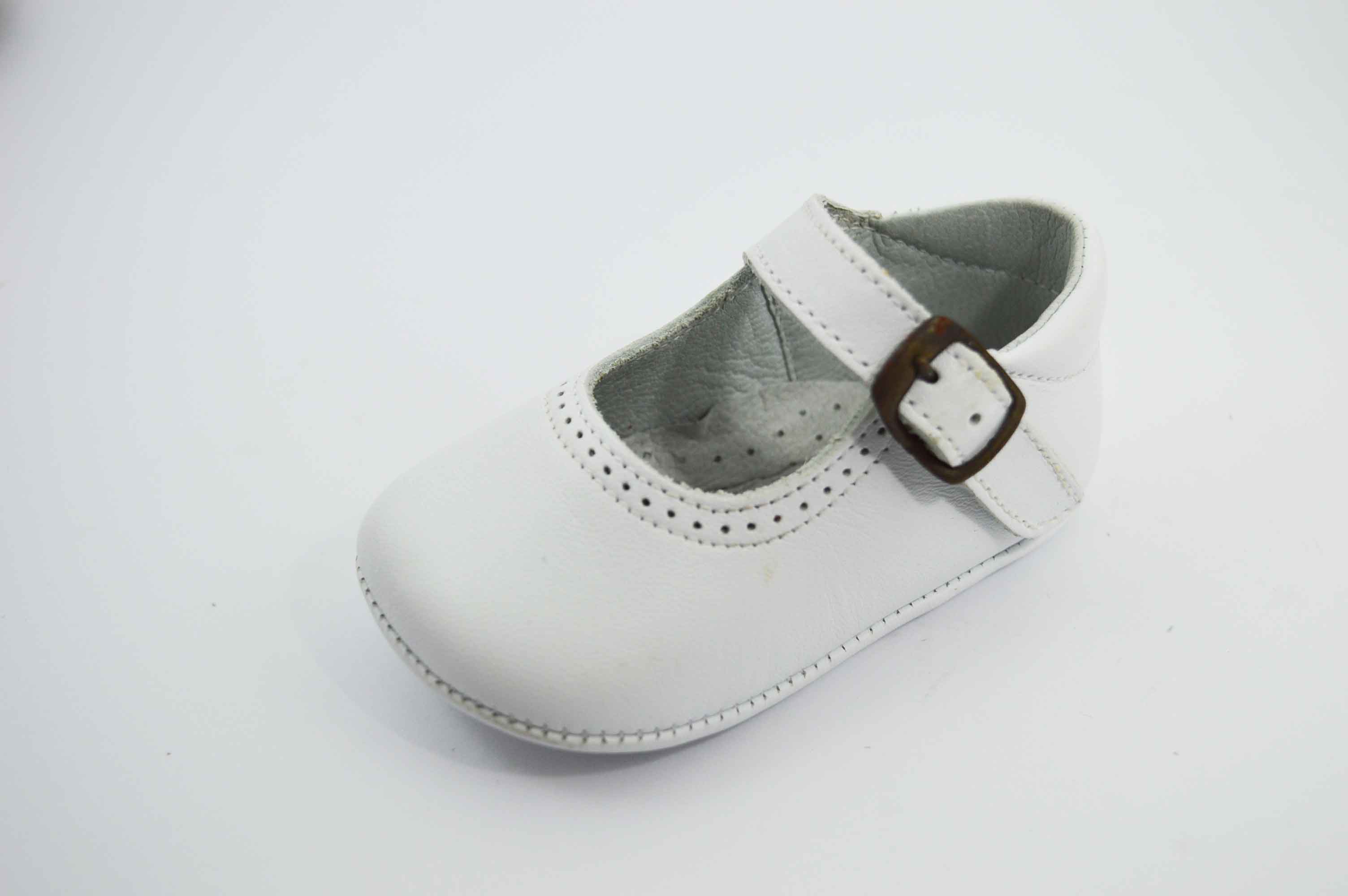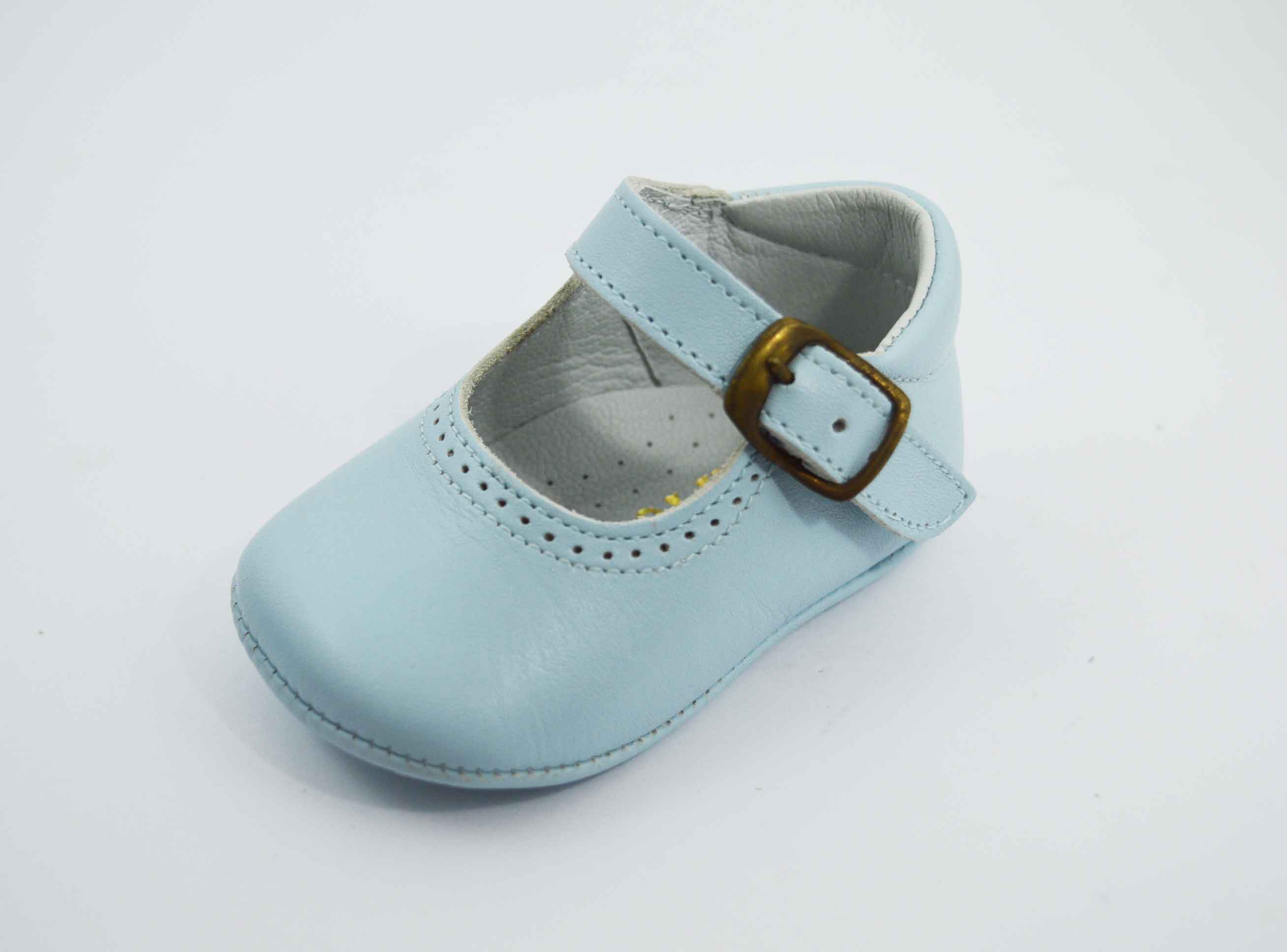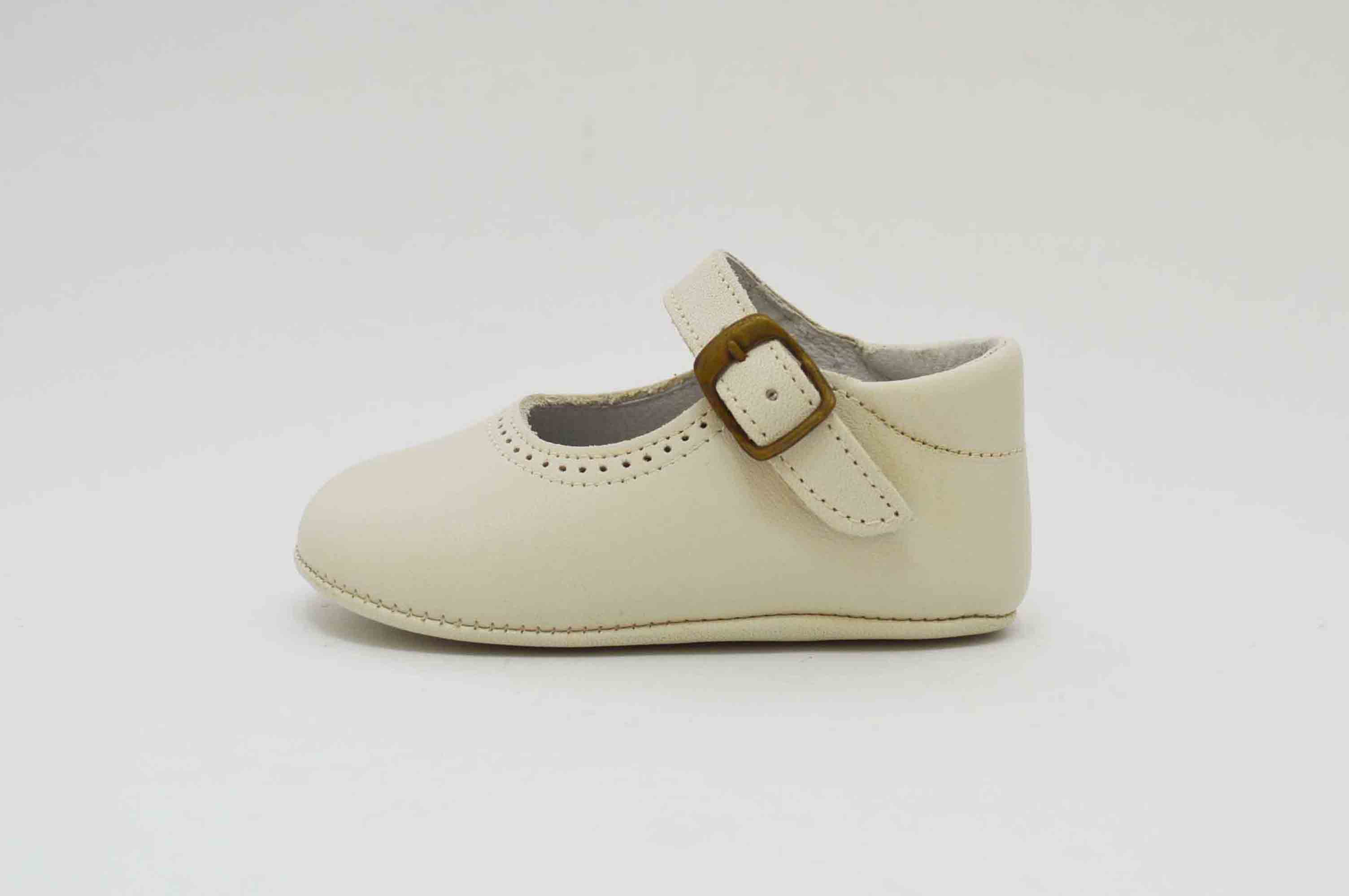 Zapatitos sin suela de bebe muy cómodos y ligeros. Con un cierre de hebilla que permite el perfecto ajuste a sus piececitos.