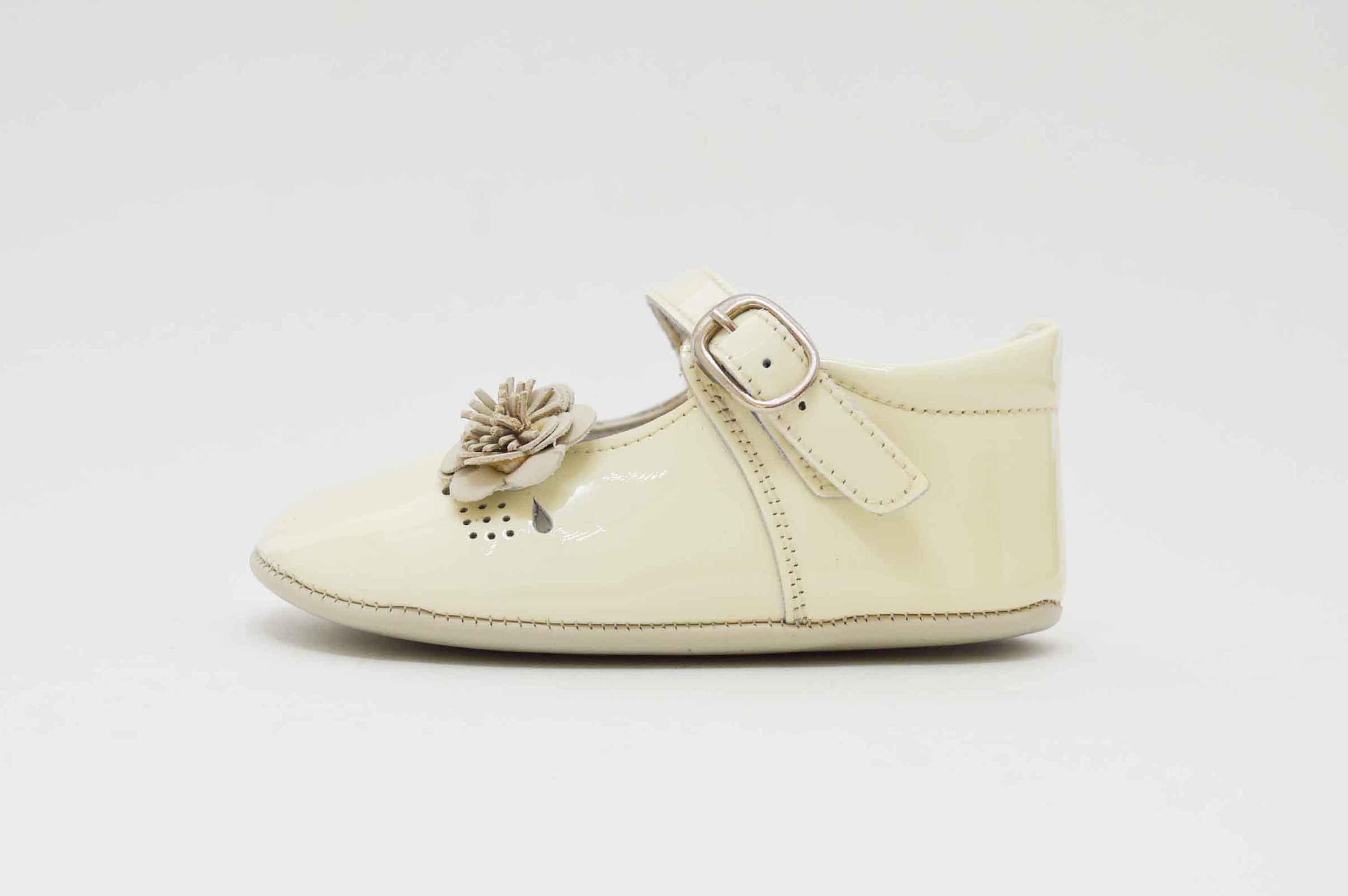 Zapatitos mercedes sin suela de bebe muy cómodos y ligeros. Con un cierre de hebilla que permite regularlo para el perfecto ajuste a sus piececitos. Ideal para ocasiones especiales.