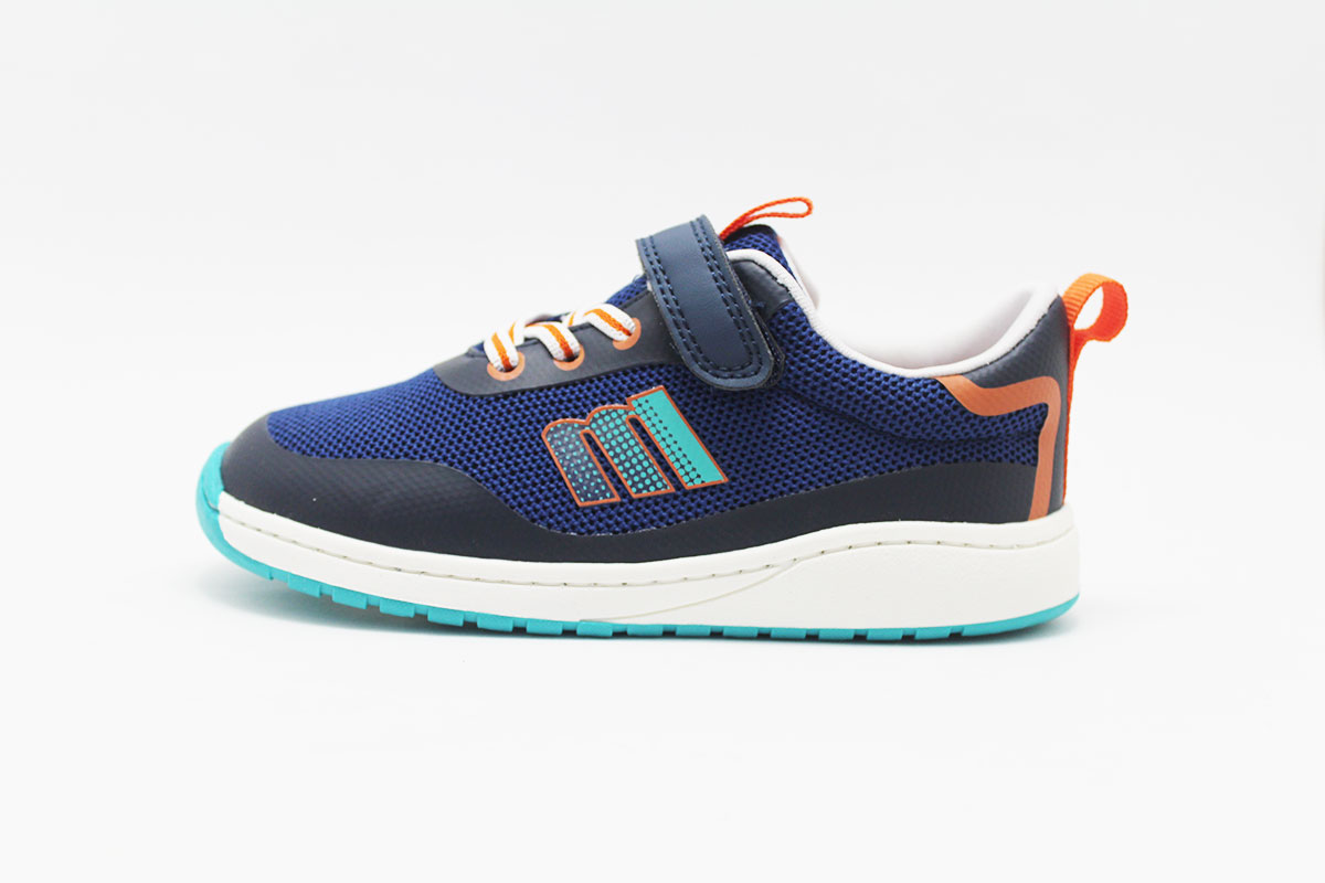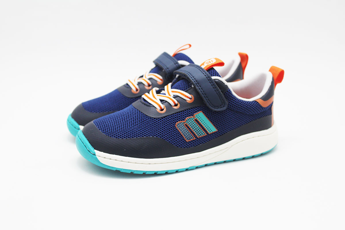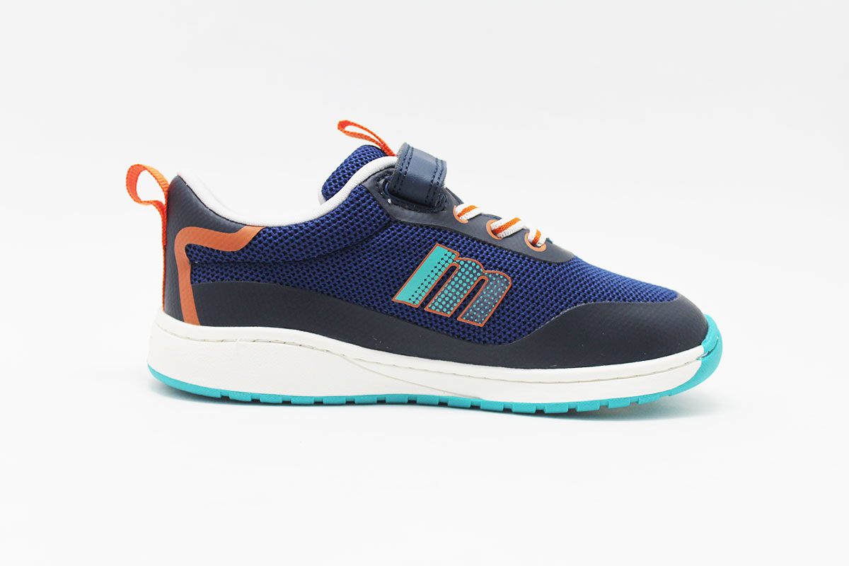 Zapatilla deportiva respetuosas para niño y niña, en distintos colores combinando con otros muy divertidos. Es la versión respetuosa de la marca Mustang, Free. Su diseño es en nylon con tira adhesiva en el empeine y cordones elásticos. Disponible en dos colores muy versátiles: azul combinado con naranja, en rosa combinando con un tono verde aguamarina.