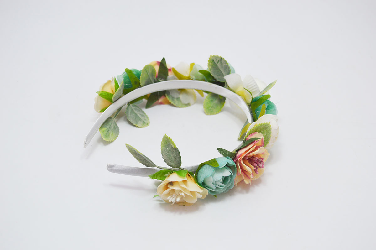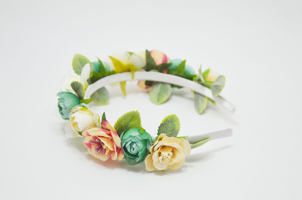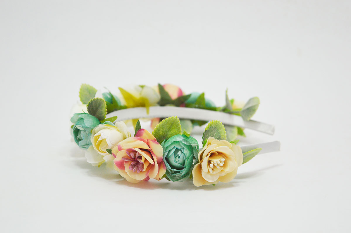 Diademas en tonos pasteles como son el rosa, verde agua o beige, ¡una combinación muy coqueta!
