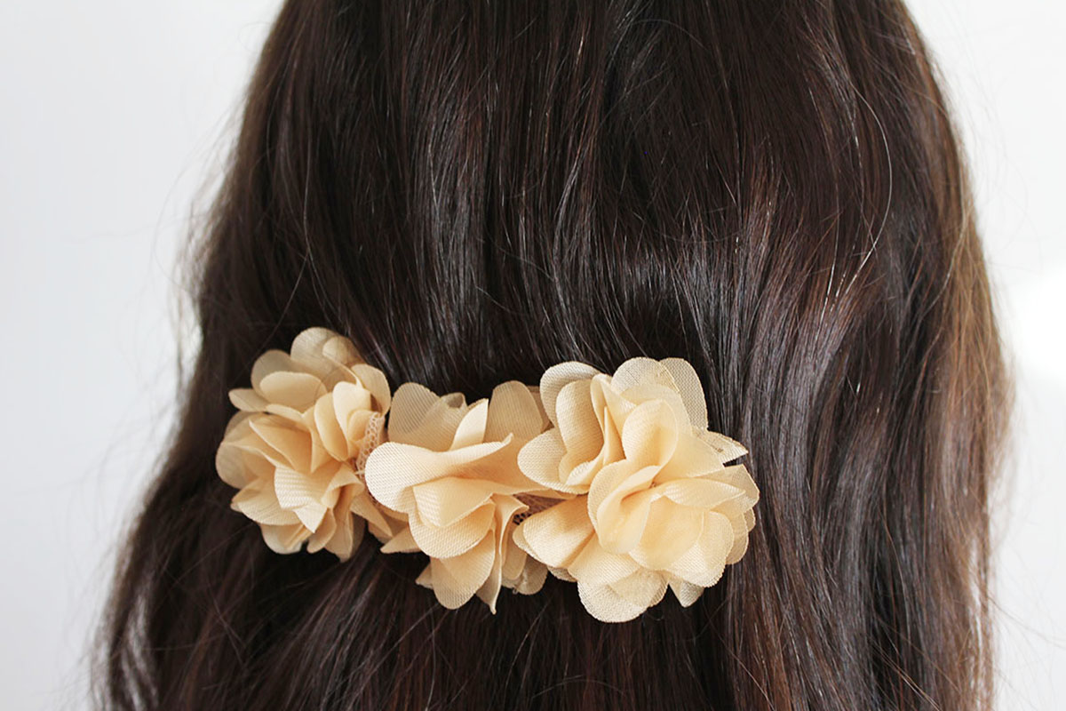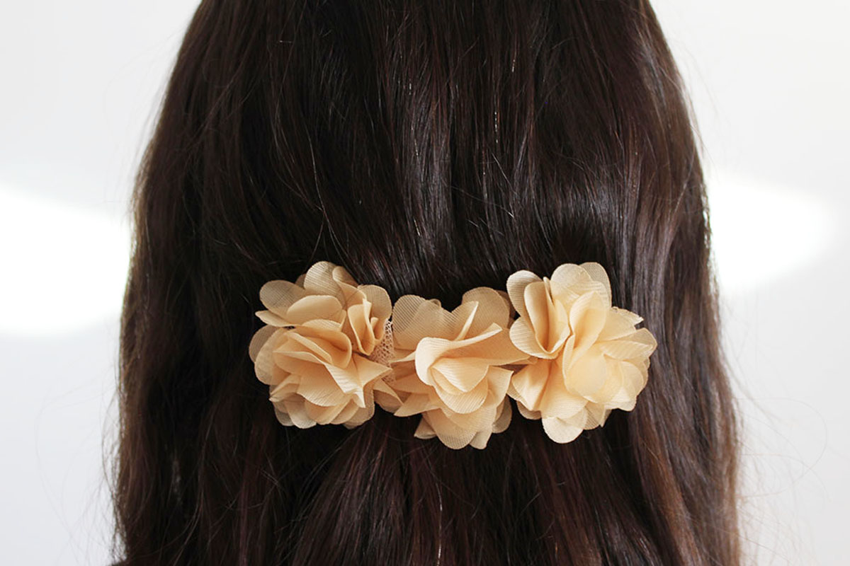 Pasador clip flores beige tostado niña
