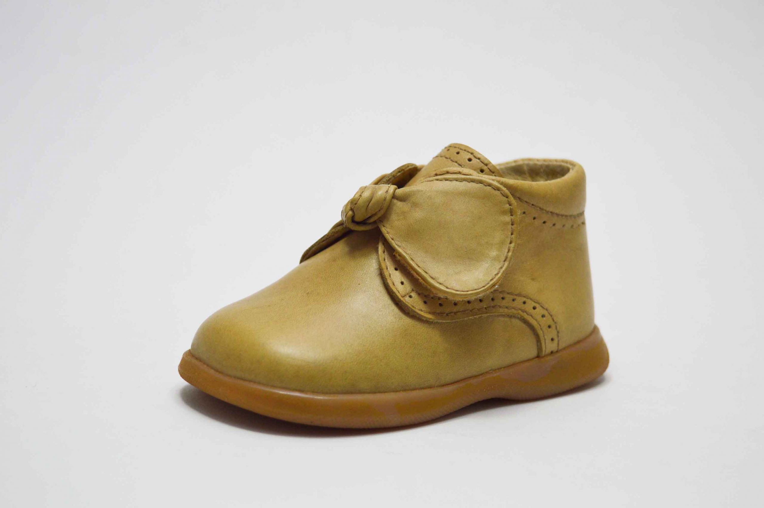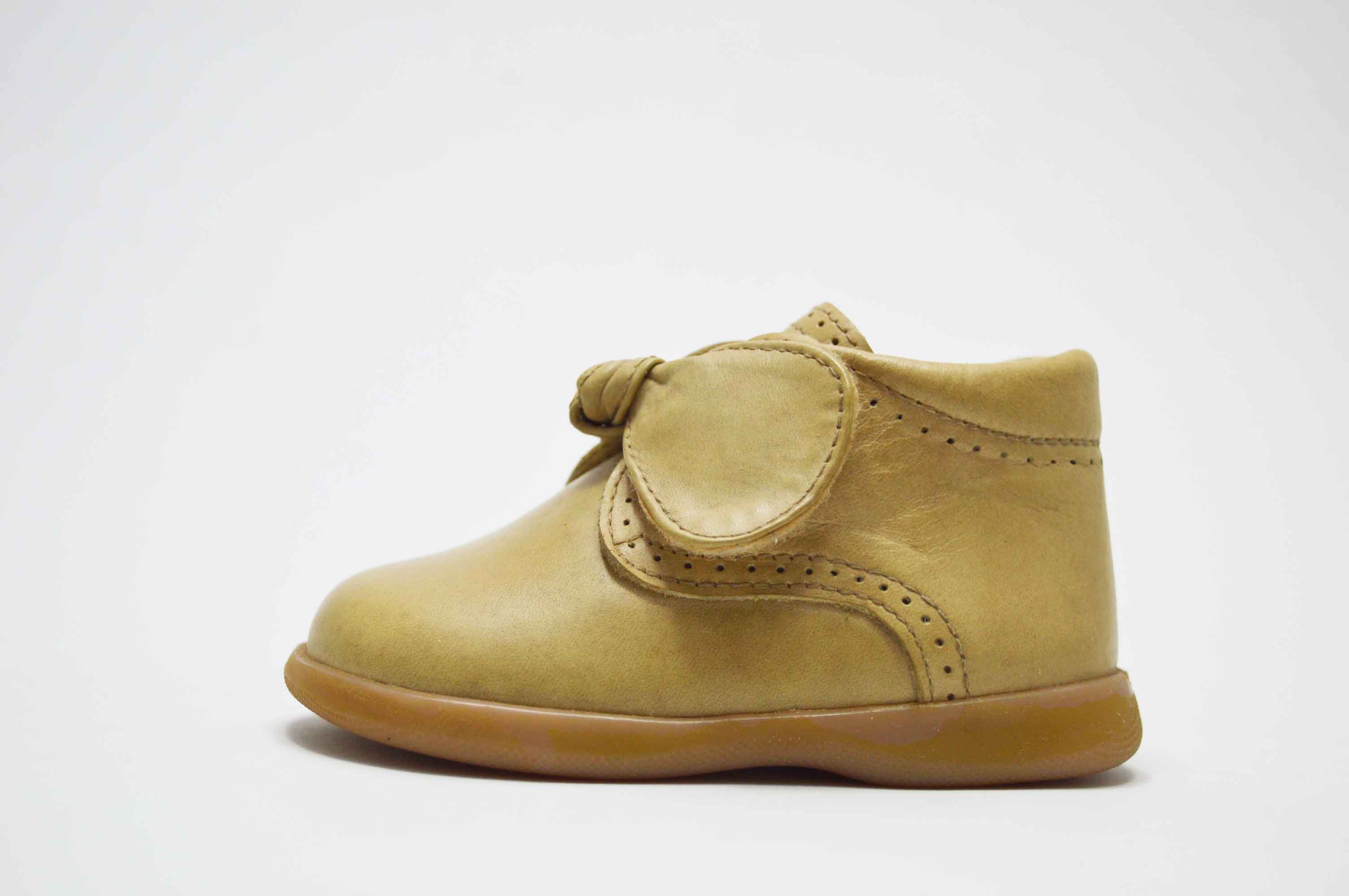 Botita de niña con cierre adherente, en el cierre adherente tiene un adorno de lazo, que le da un toque muy coqueto.