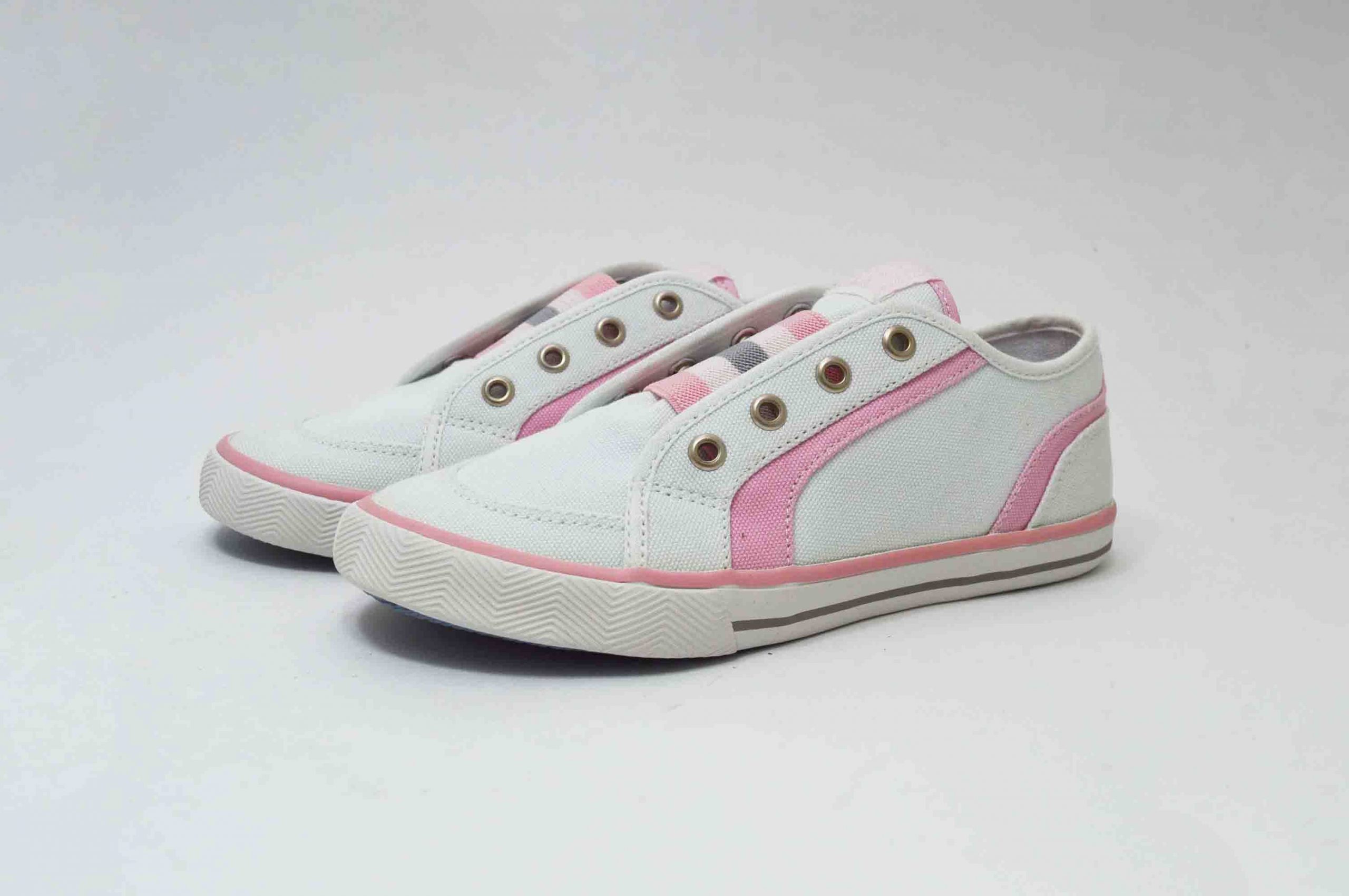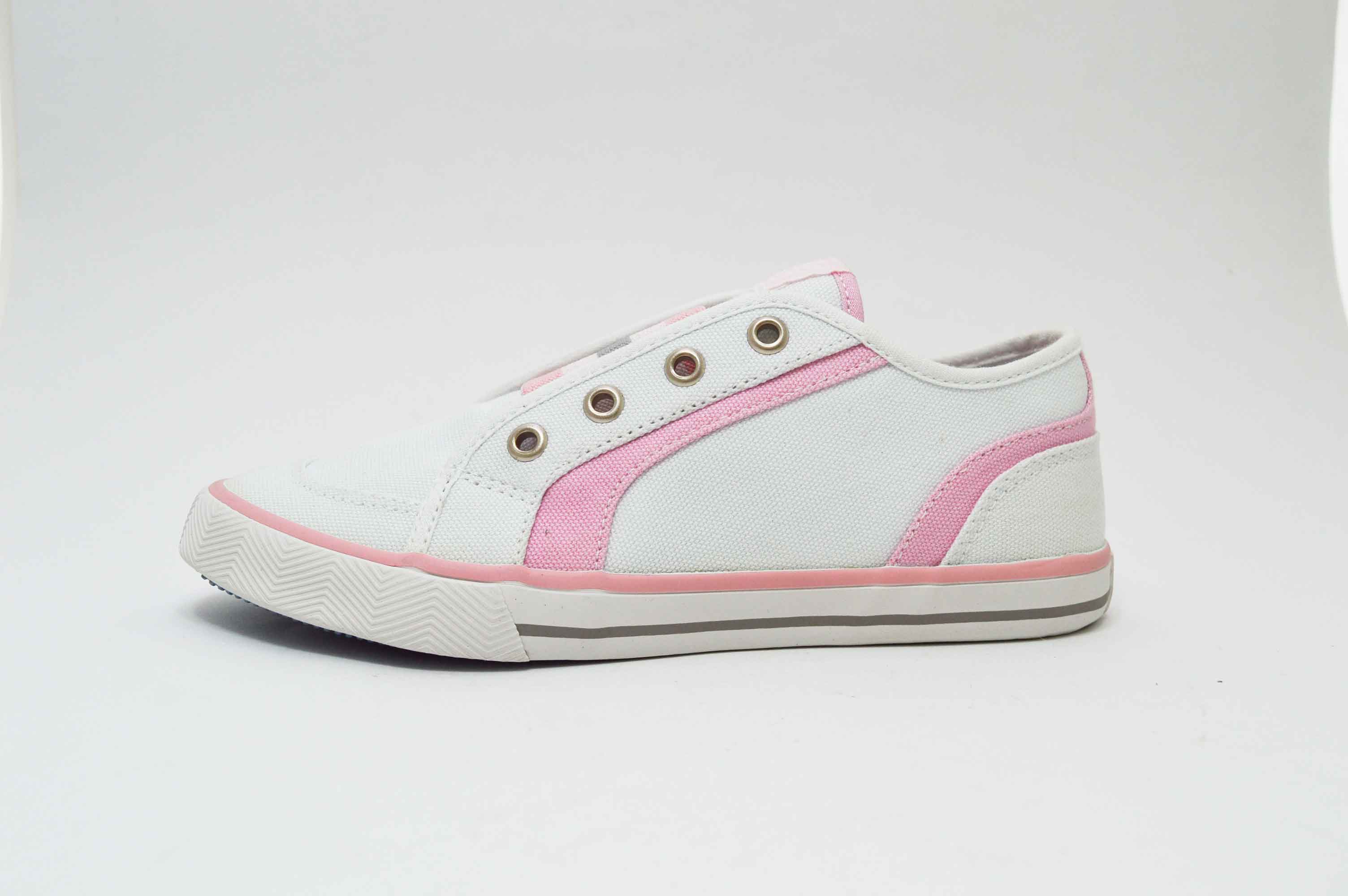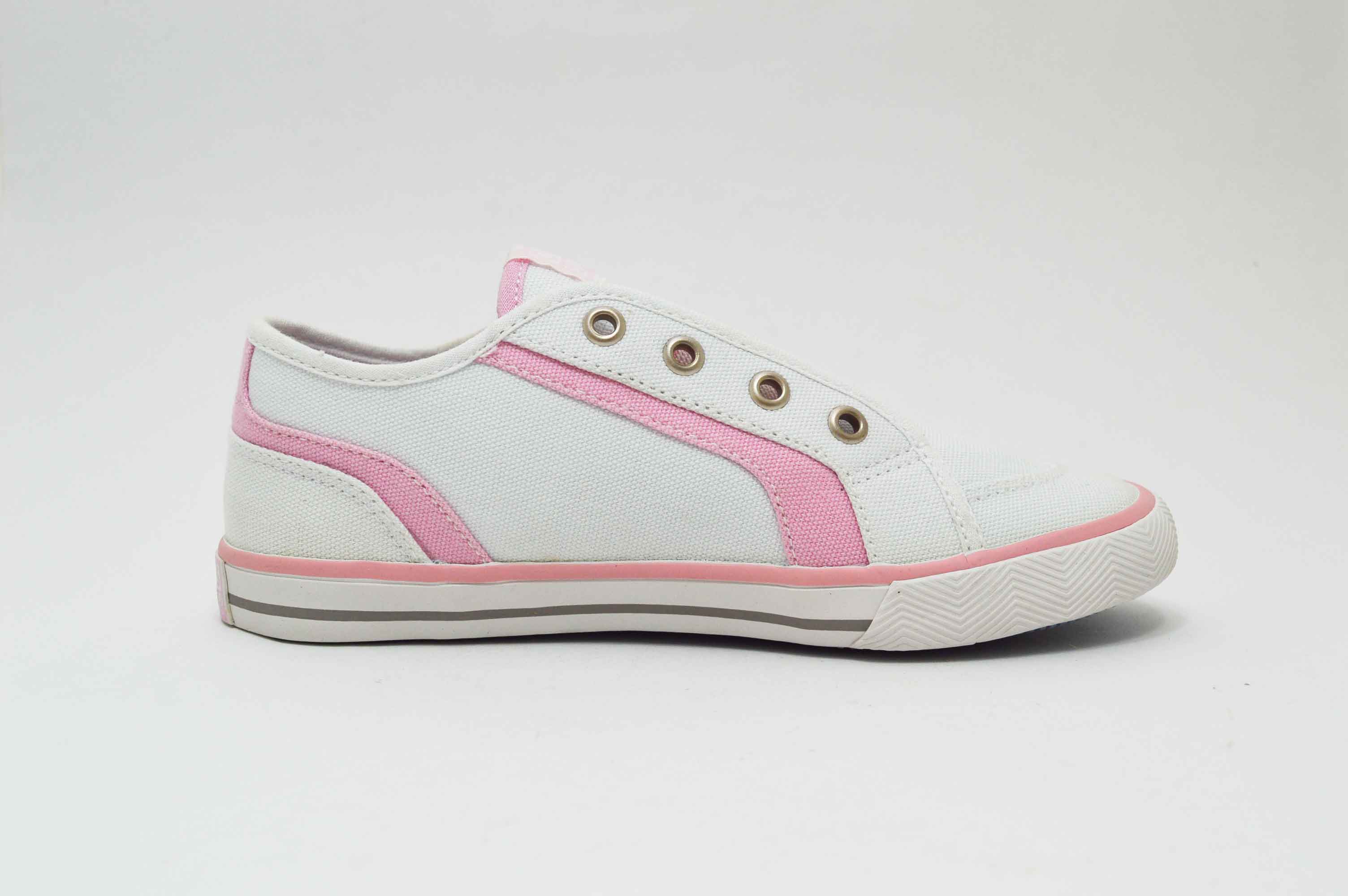 Bamba lona de la marca Gioseppo de niña en color blanco combinado con rosa. Sin cordones pero lleva un elástico en el centro. La suela es flexible y la planta muy cómoda. Disponible desde la talla 25 hasta el 38.