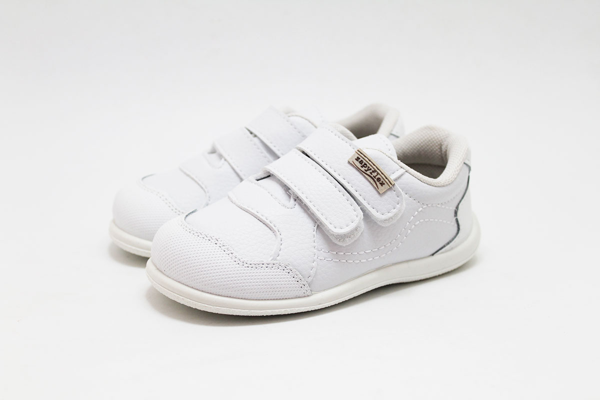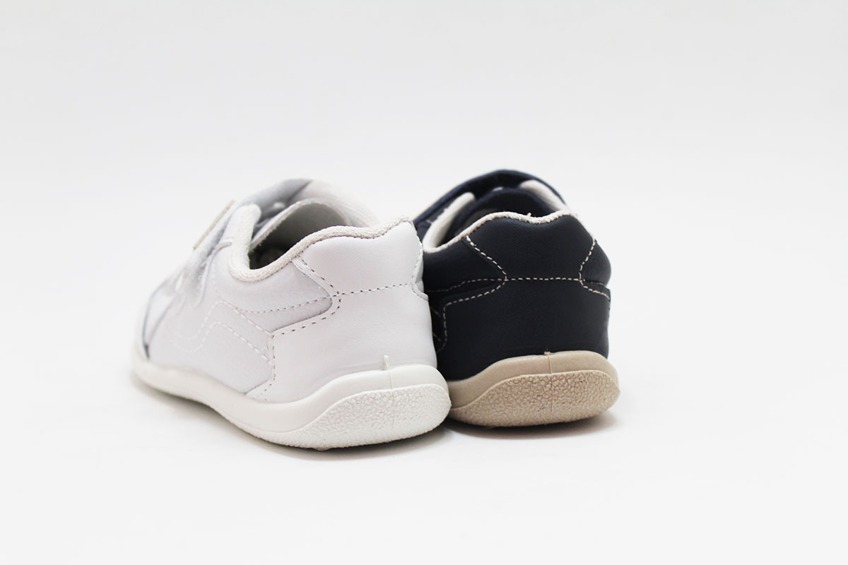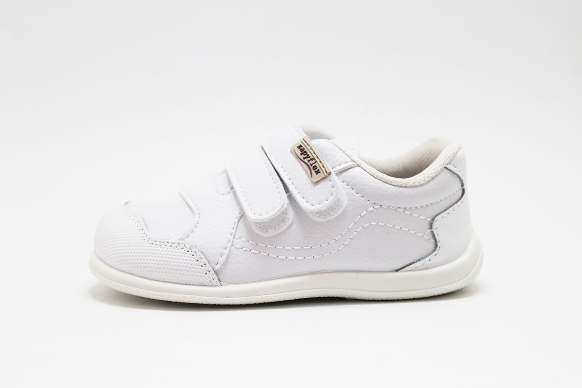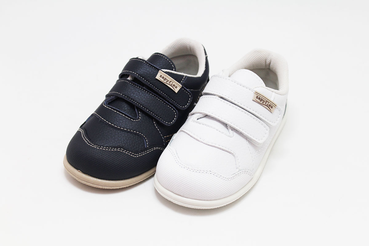Deportivos respetuosos tanto para niñas como para niños, con diseño sencillo de doble cierre, de la marca Zapyflex. Son unos zapatitos ideales para usar cada día, tienen un cierre adherente y cordones elásticos para que se ajusten bien a su pie. Disponible en color azul marino y en blanco. Los colores más básicos para usar tanto como deportivo para las actividades deportivas como colegial para uniforme.
