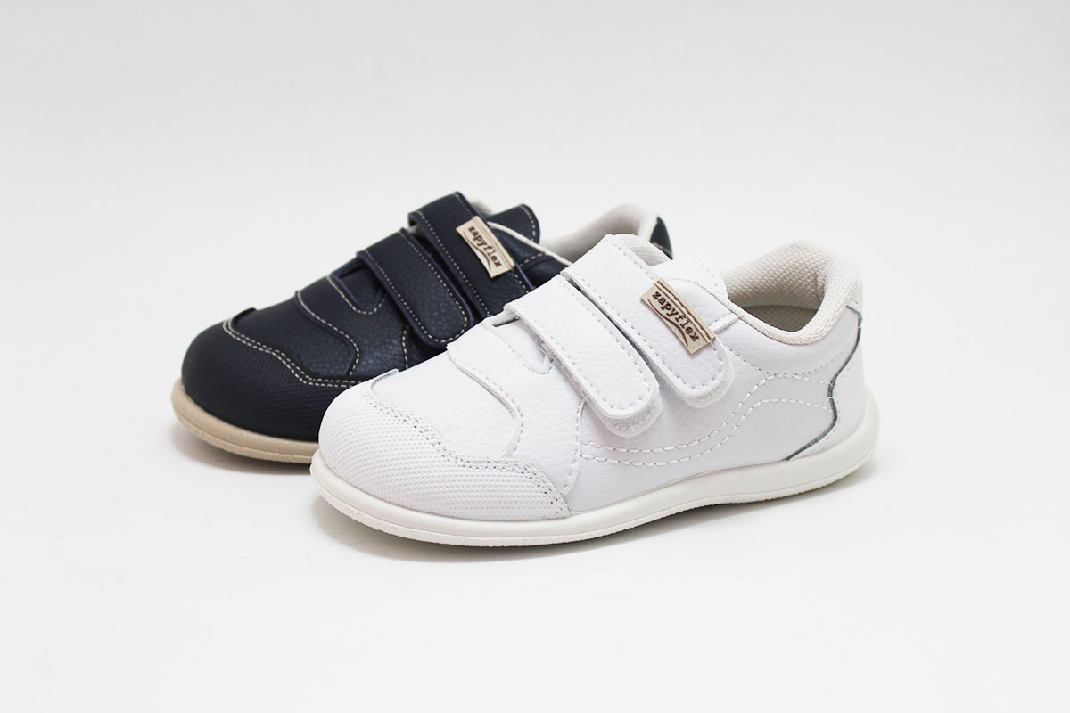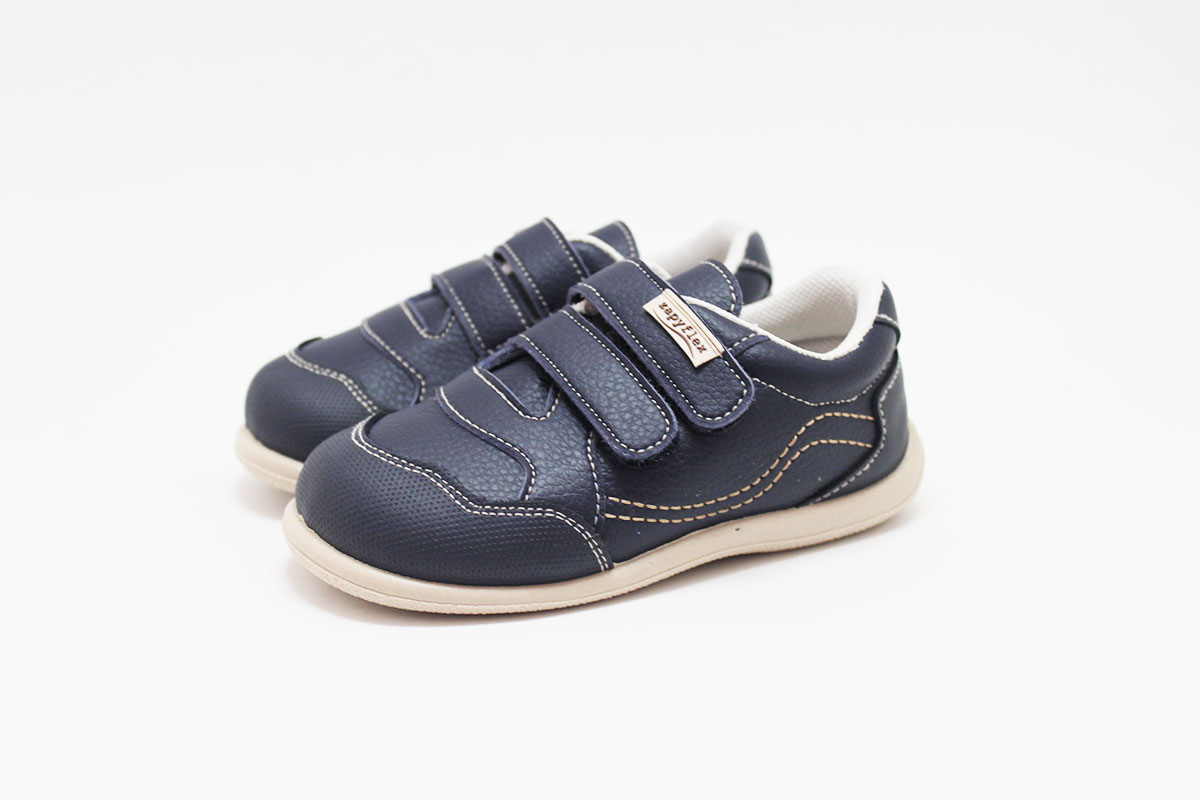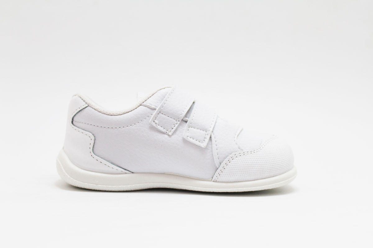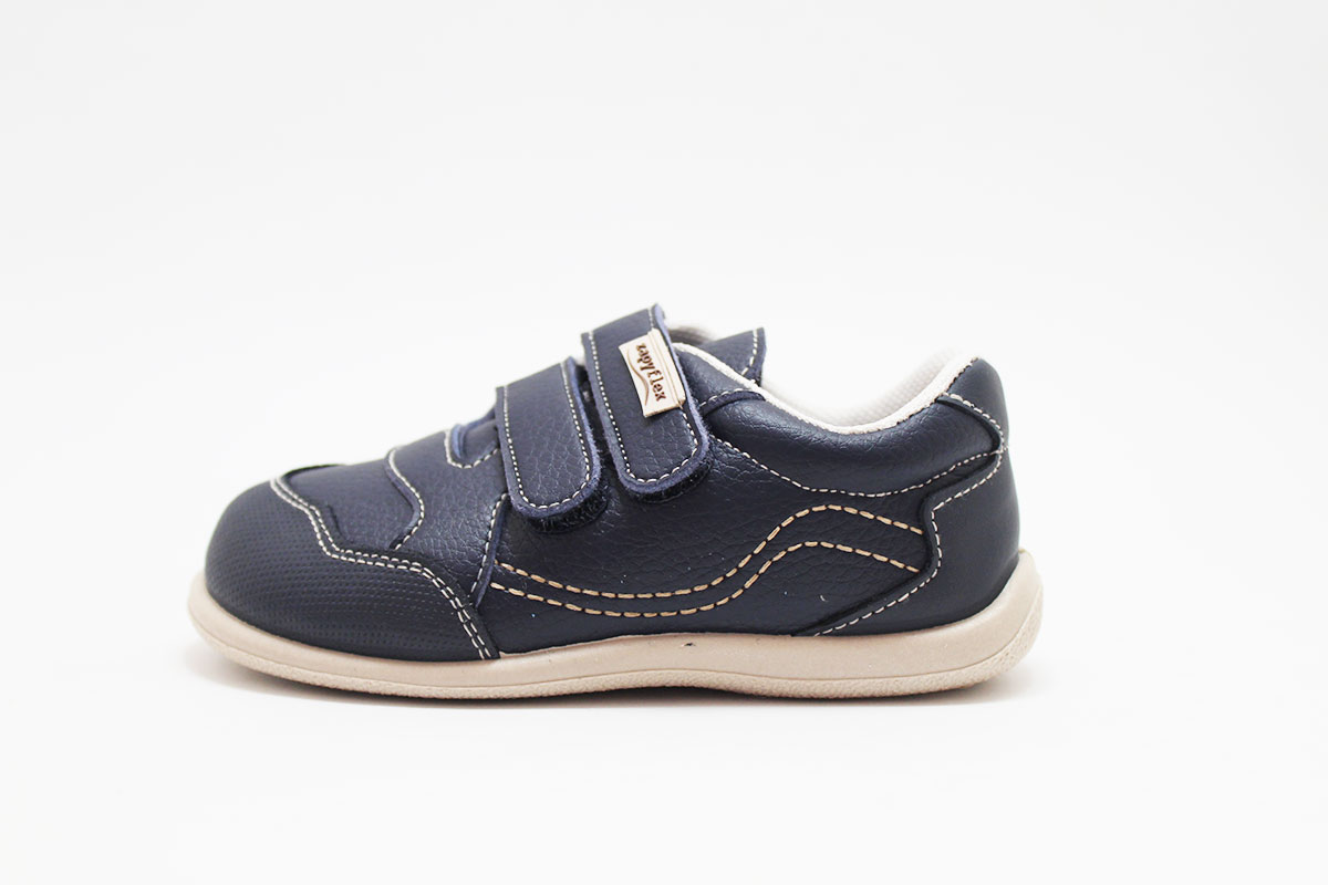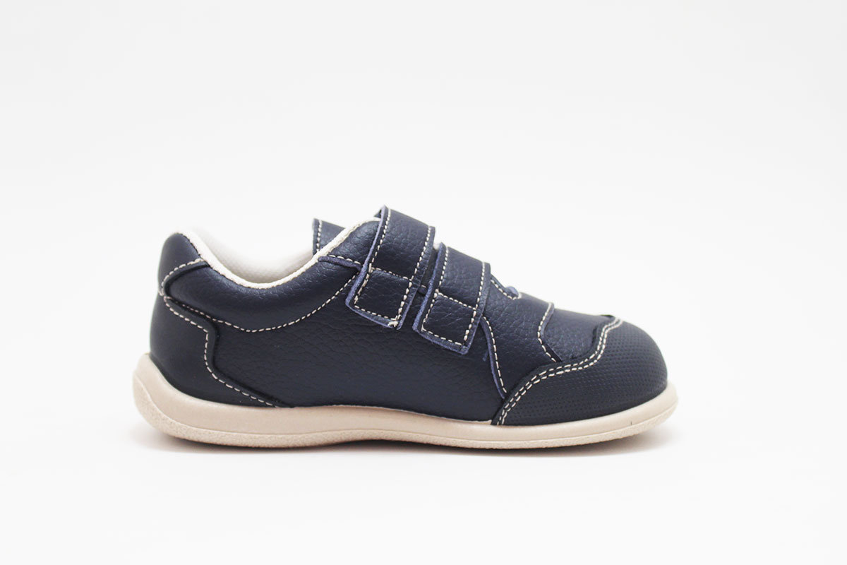 Deportivos respetuosos tanto para niñas como para niños, con diseño sencillo de doble cierre, de la marca Zapyflex. Son unos zapatitos ideales para usar cada día, tienen un cierre adherente y cordones elásticos para que se ajusten bien a su pie. Disponible en color azul marino y en blanco. Los colores más básicos para usar tanto como deportivo para las actividades deportivas como colegial para uniforme.