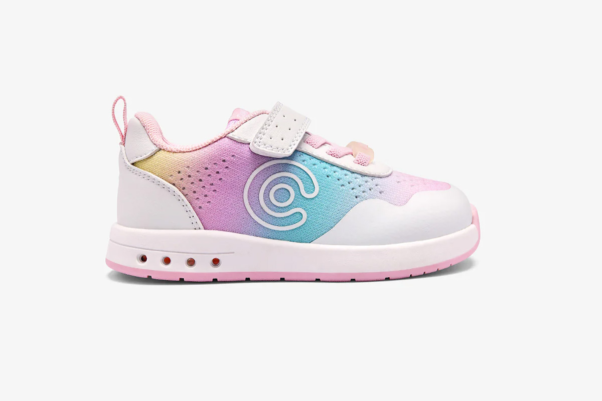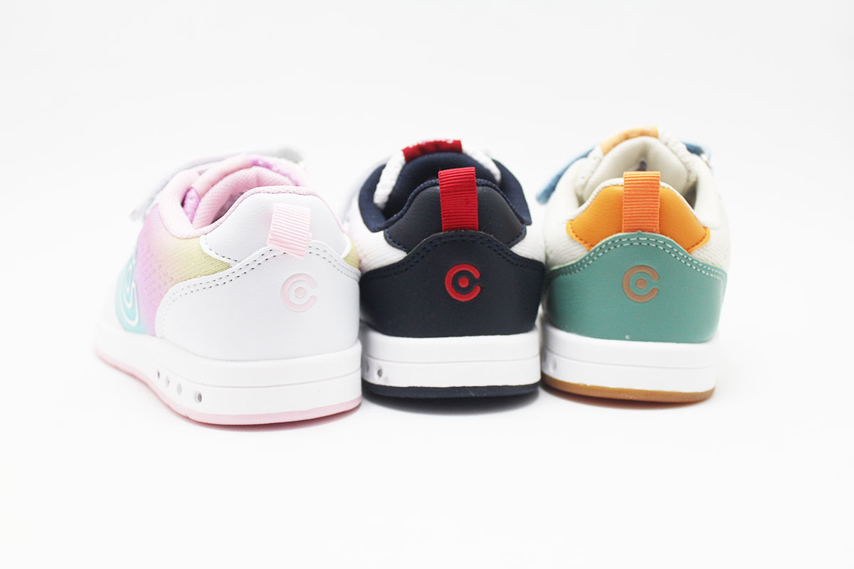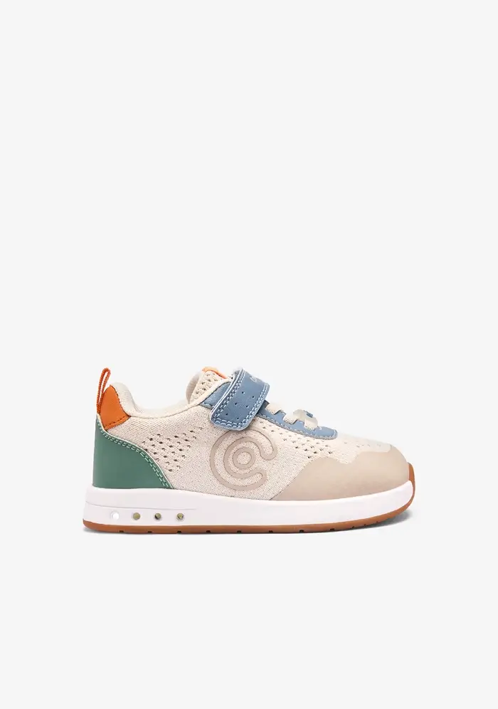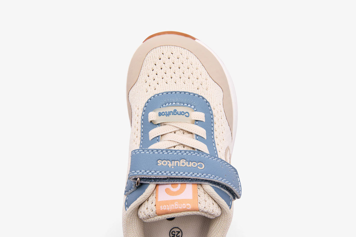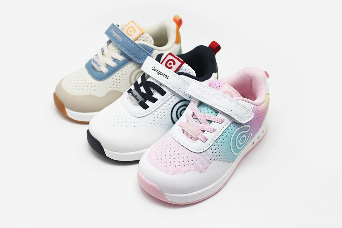 Estas zapatillas barefoot con luces de la línea Goflex, de la marca Conguitos, están disponibles en tres combinaciones: beige combinando con azules y verdes, blanco combinado con azul marino y rojo, y rosa combinando con azules y verdes. Están pensadas para acompañar el día a día con comodidad, flexibilidad y respeto por el desarrollo natural del pie infantil.