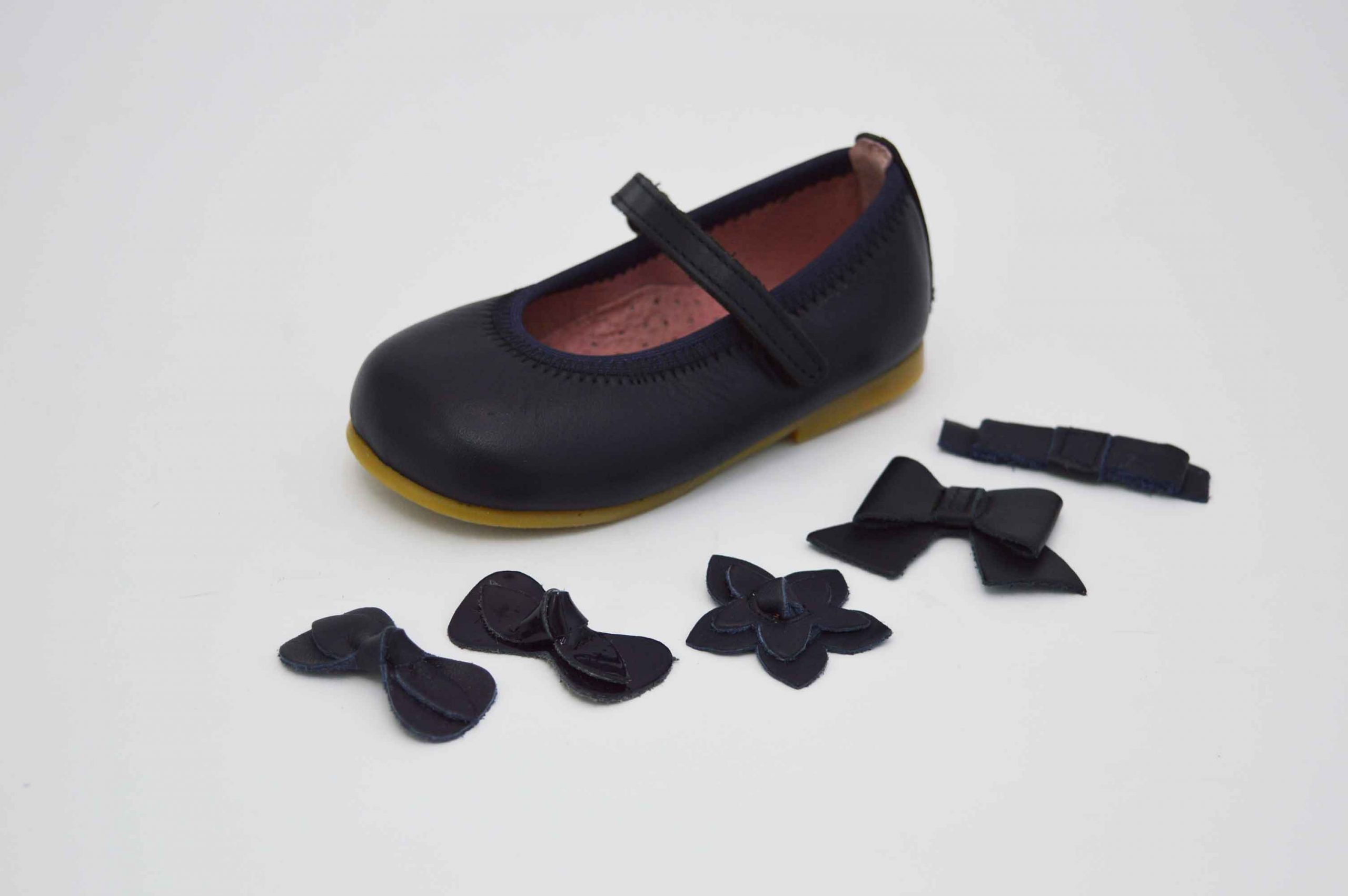 Merceditas sencillas en color azul marino con cierre adherente que puedes combinar con un único adorno, el que más te guste. Así tendrás un zapato único, totalmente adecuado a tu gusto. Con diseño, exclusividad, personalización a un precio inmejorable.
