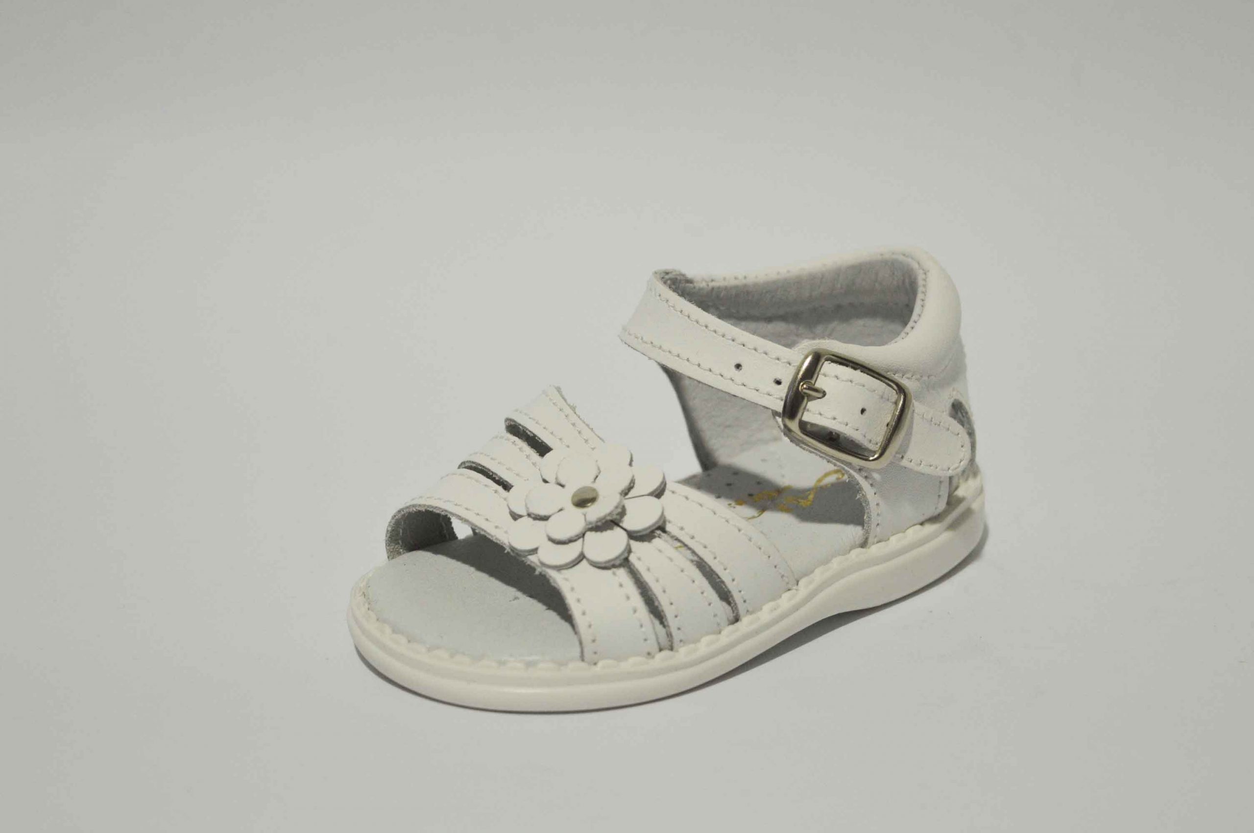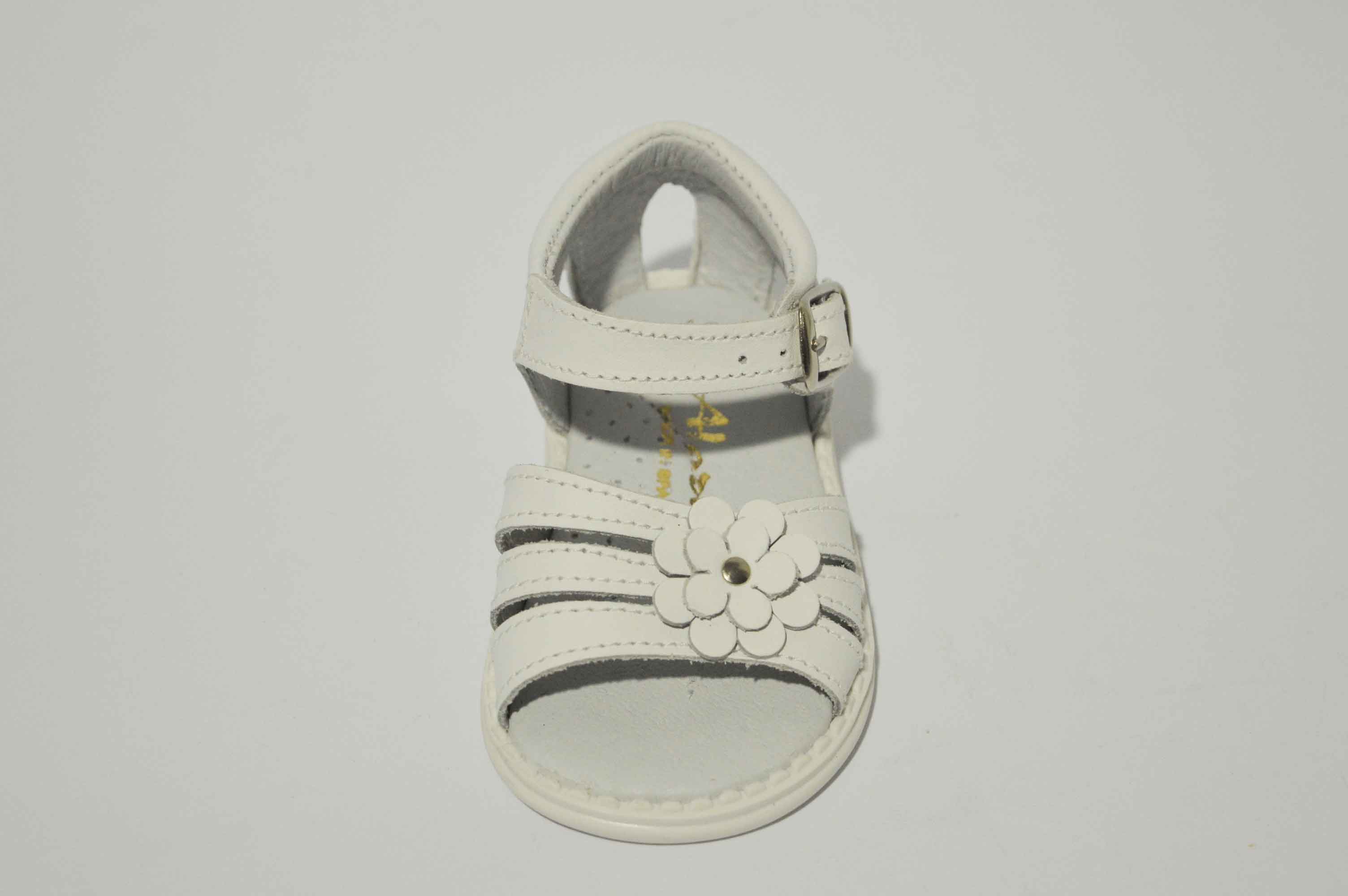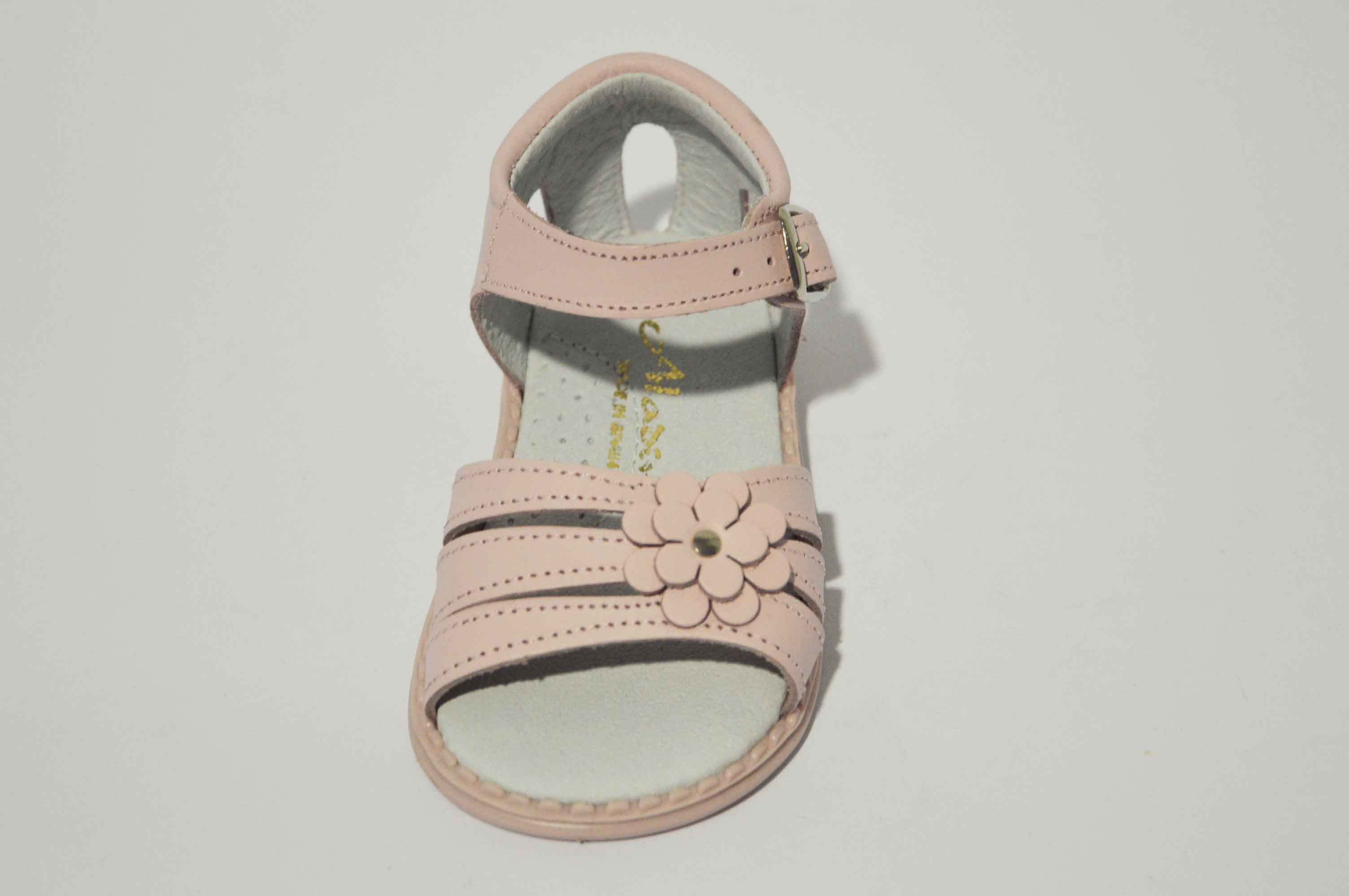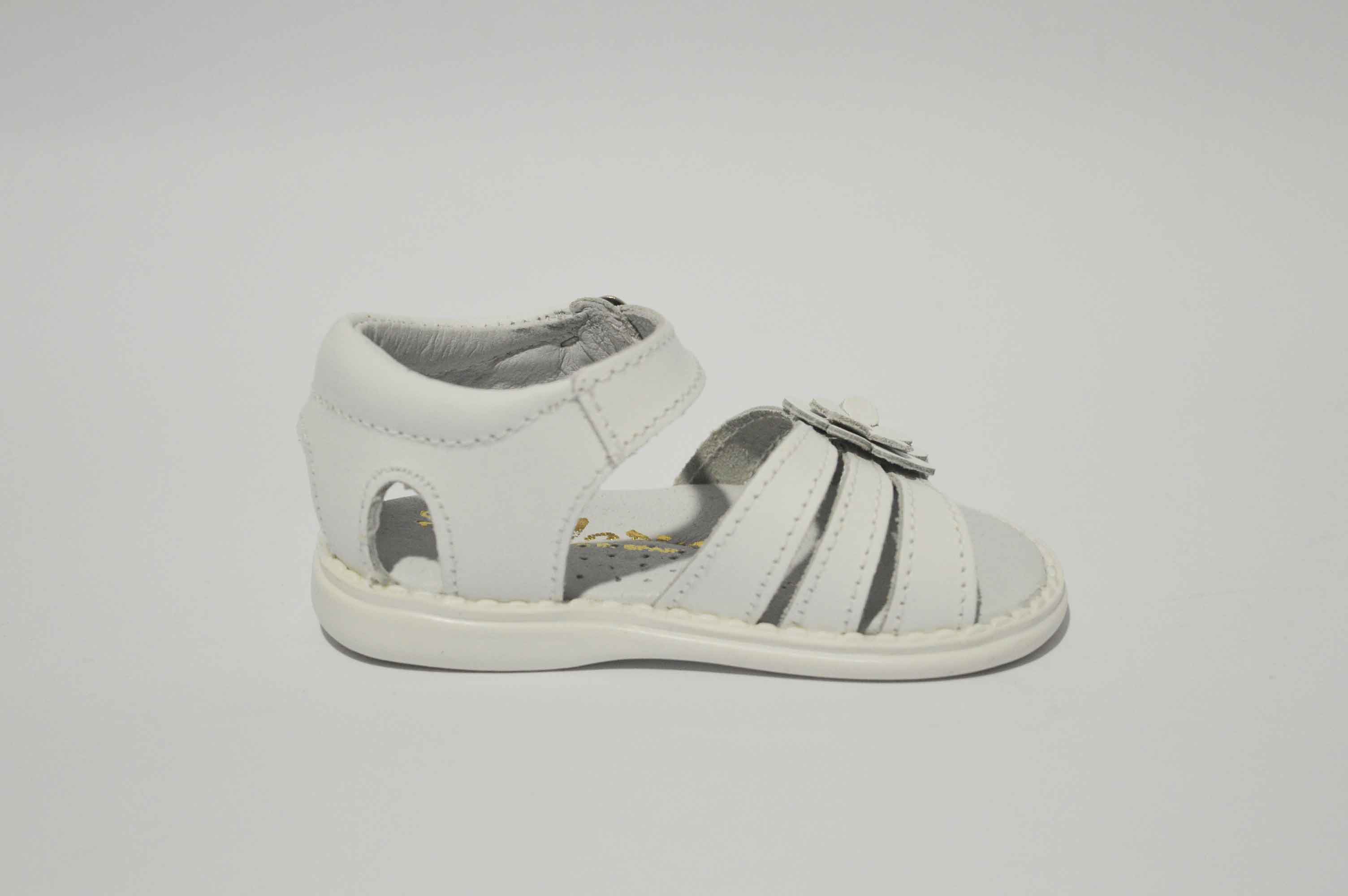 Sandalias con talón cerrado, muy cómodas y adaptadas para las niñas. Sandalia con tres tiras y decorada con una bonita flor. Disponible en rosa y en blanco, y como siempre, hecho en piel.