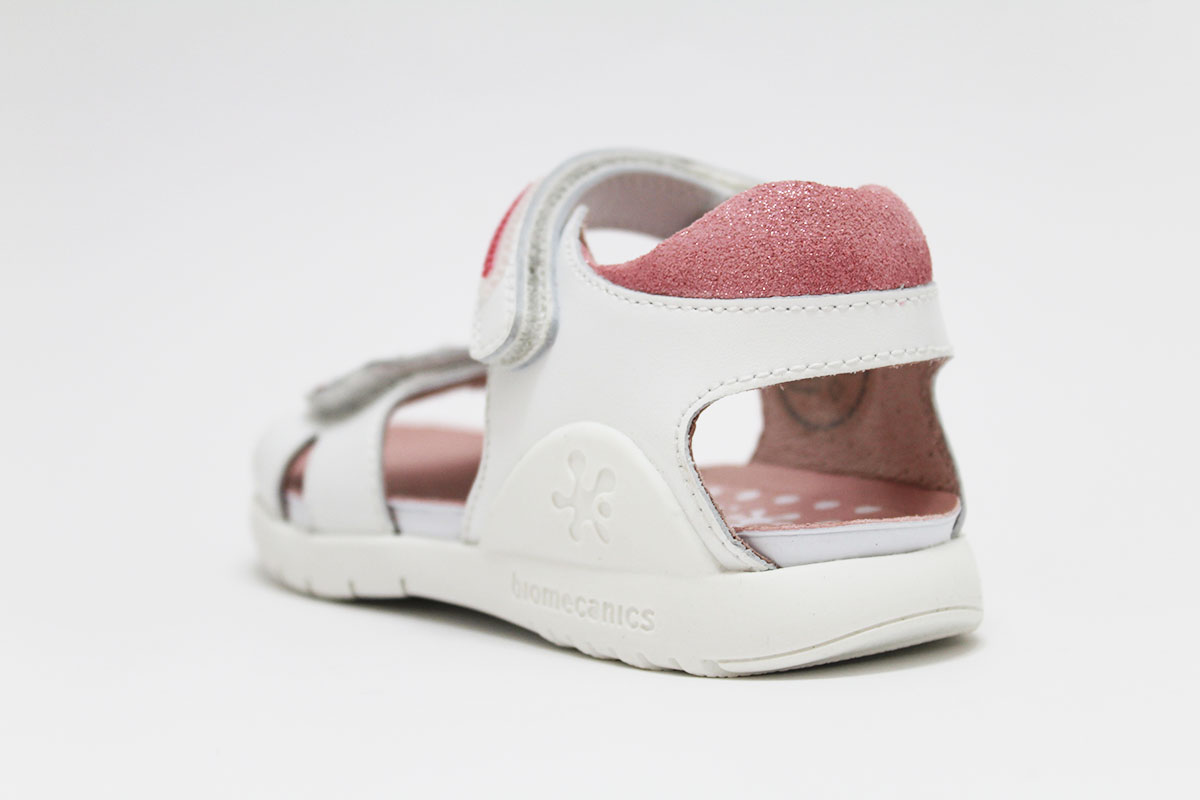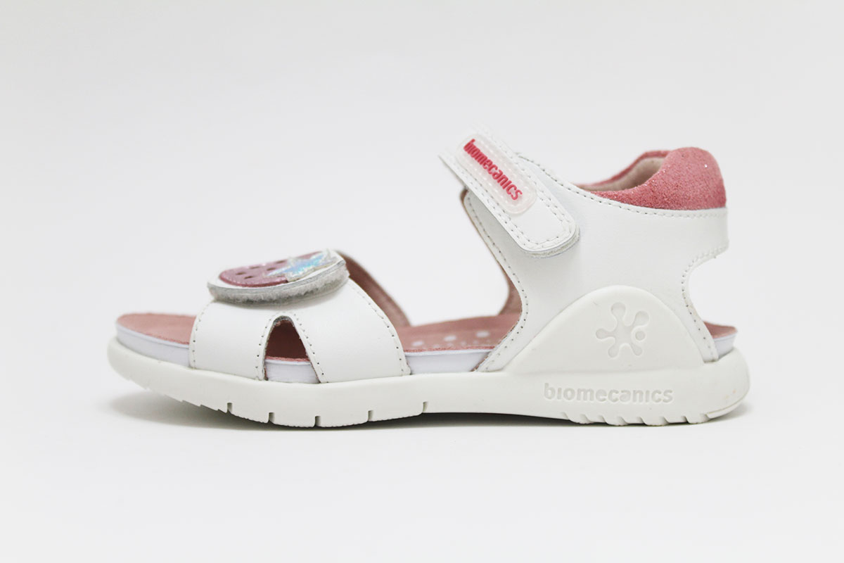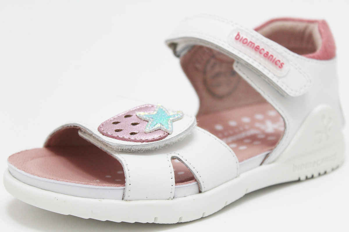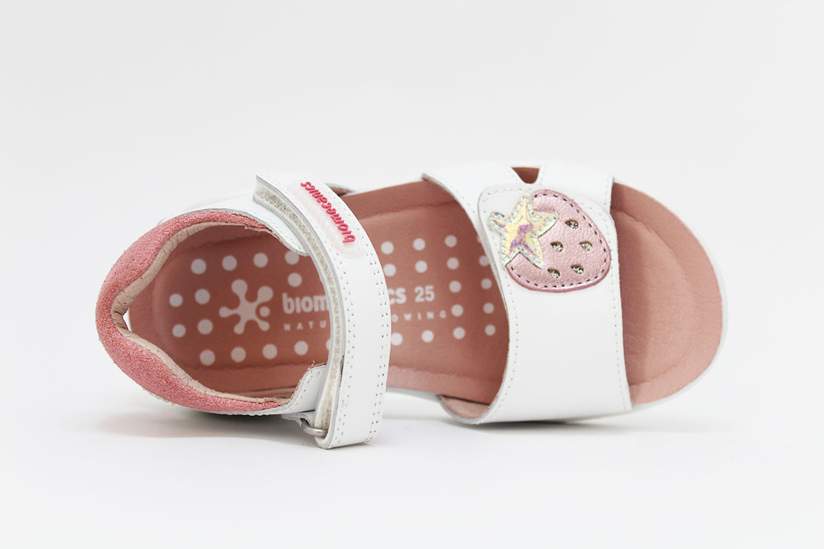 Preciosa sandalia de la marca Biomecanics en piel natural con 2 cierres adherentes para una perfecta sujeción al pie. Gracias al doble cierre, se adapta genial a cualquier tipo de pie. Tiene un diseño de una fresa en el cierre de la pala. Una sandalia muy cómoda y ponible para muchas ocasiones.