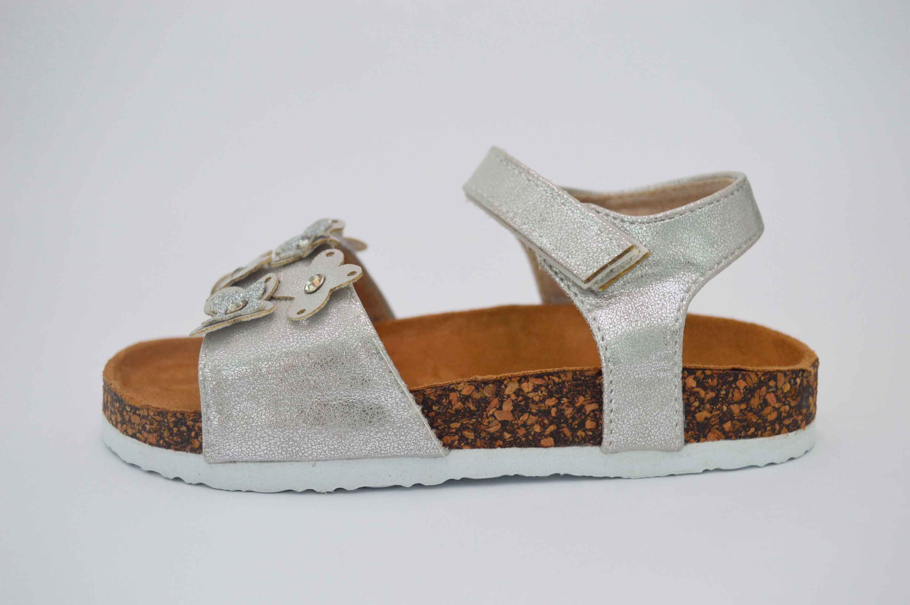 Sandalias de niña tipo bio, en dos colores distintos: dorado y plata. Con detalles de florecitas pequeñas que le dan un toque especial.
