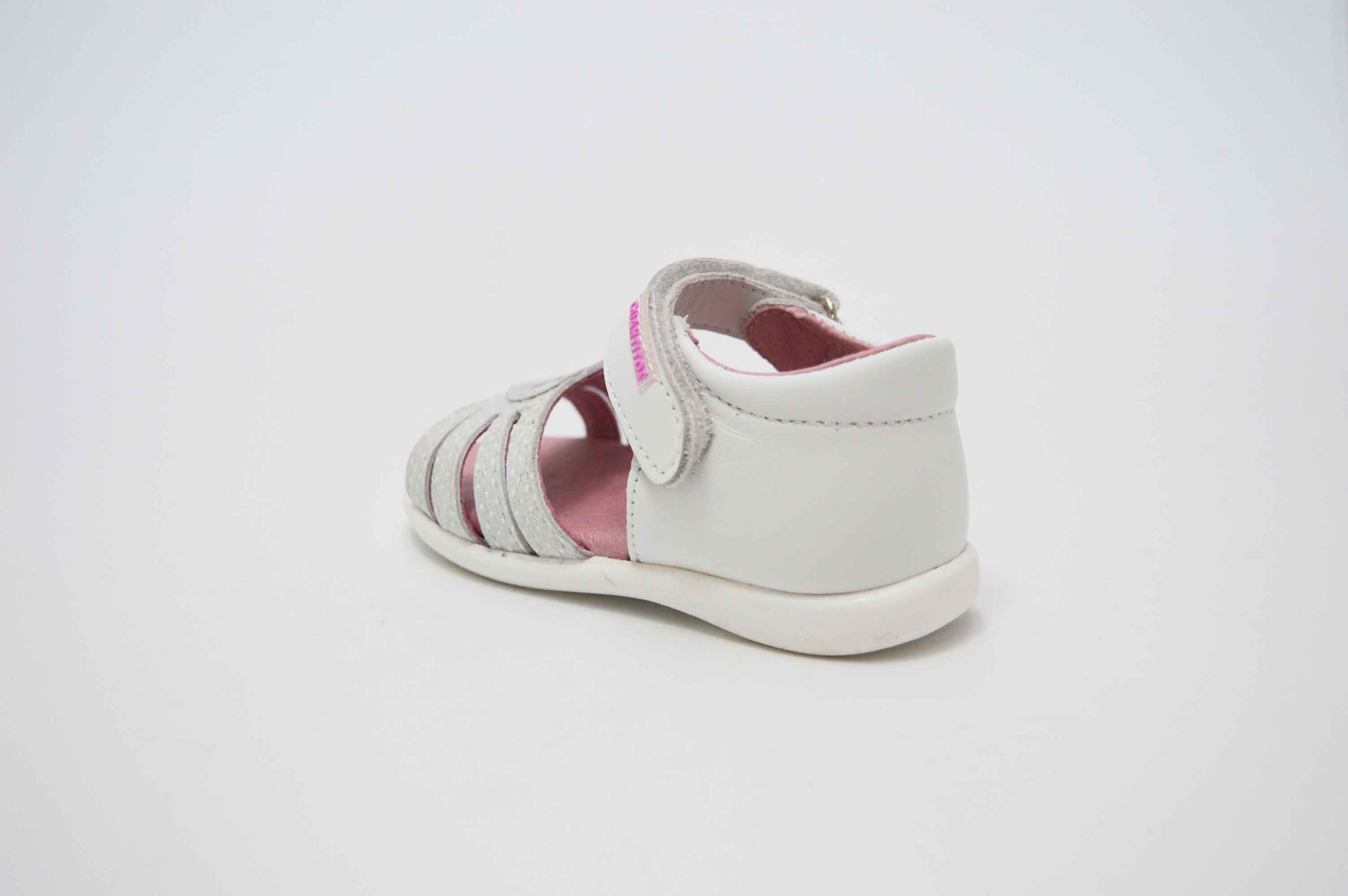 Sandalias con talón cerrado, muy cómodas y adaptadas para las niñas, desde la talla 18 hasta la talla 24. Con suela de goma antideslizante y flexible. La planta es acolchada lo que aporta comodidad al zapato para las más pequeñas de la casa. La sandalia lleva un detalle de corazoncito en la pala.