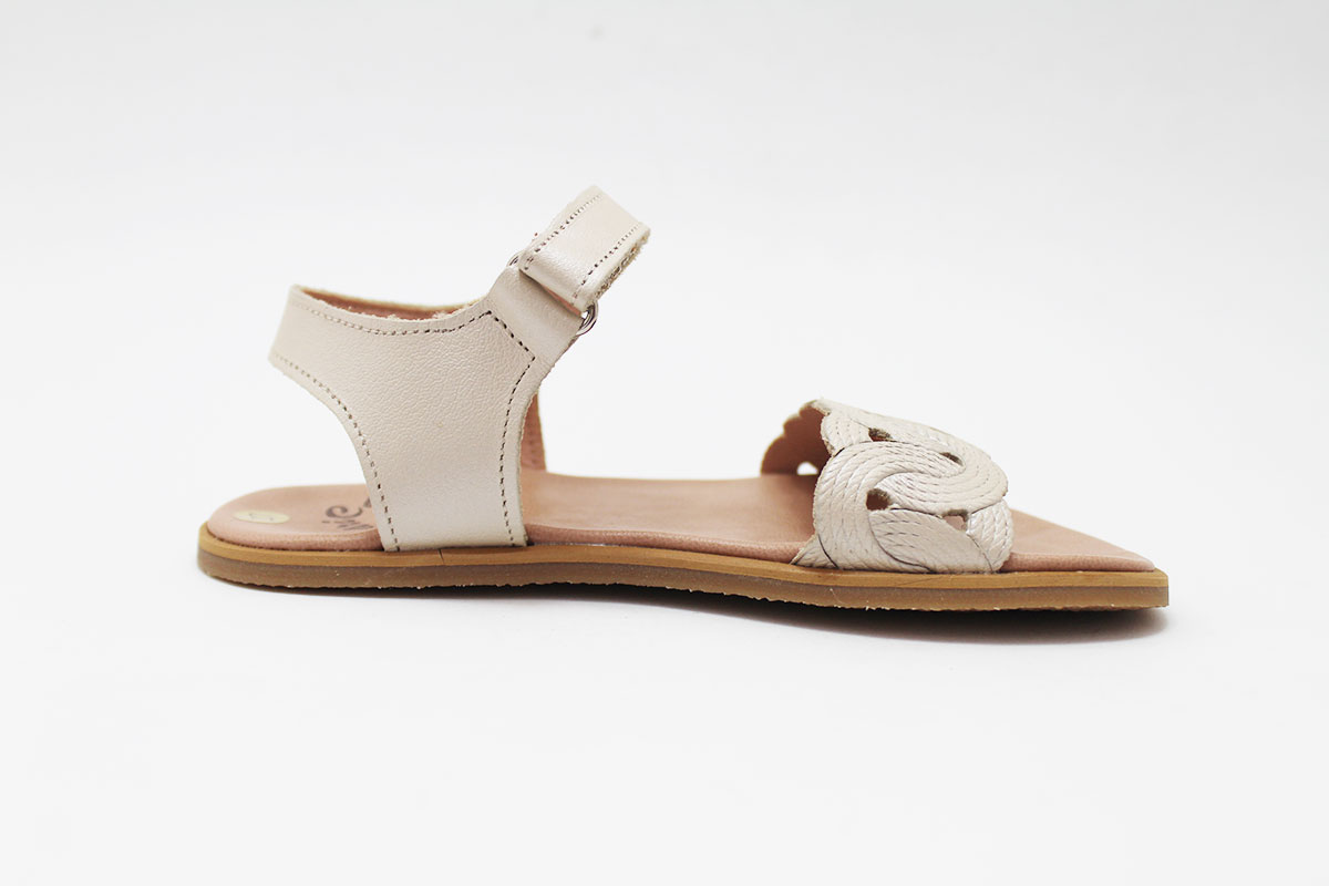 Sandalias barefoot para niña con un diseño muy coqueto. Tiene un cómodo cierre adherente para que puedan ponérselo y quitárselo ellas solas con una mayor autonomía. Quedará genial con cualquier modelito, para que vayan a la última, sin tener que renunciar a la comodidad gracias a la suela blandita y flexible. Son fabricadas íntegramente en piel.