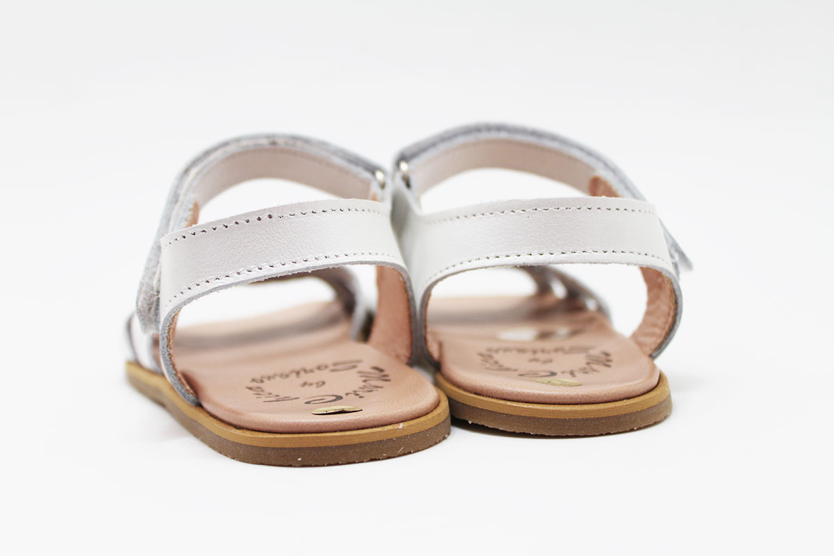 Sandalias para niña con tres preciosas tiras onduladas. Tiene un cómodo cierre adherente para que puedan ponérselo y quitárselo ellas solas con una mayor autonomía. Quedará genial con cualquier modelito, para que vayan a la última, sin tener que renunciar a la comodidad gracias a la suela blandita y flexible. Son fabricadas íntegramente en piel.