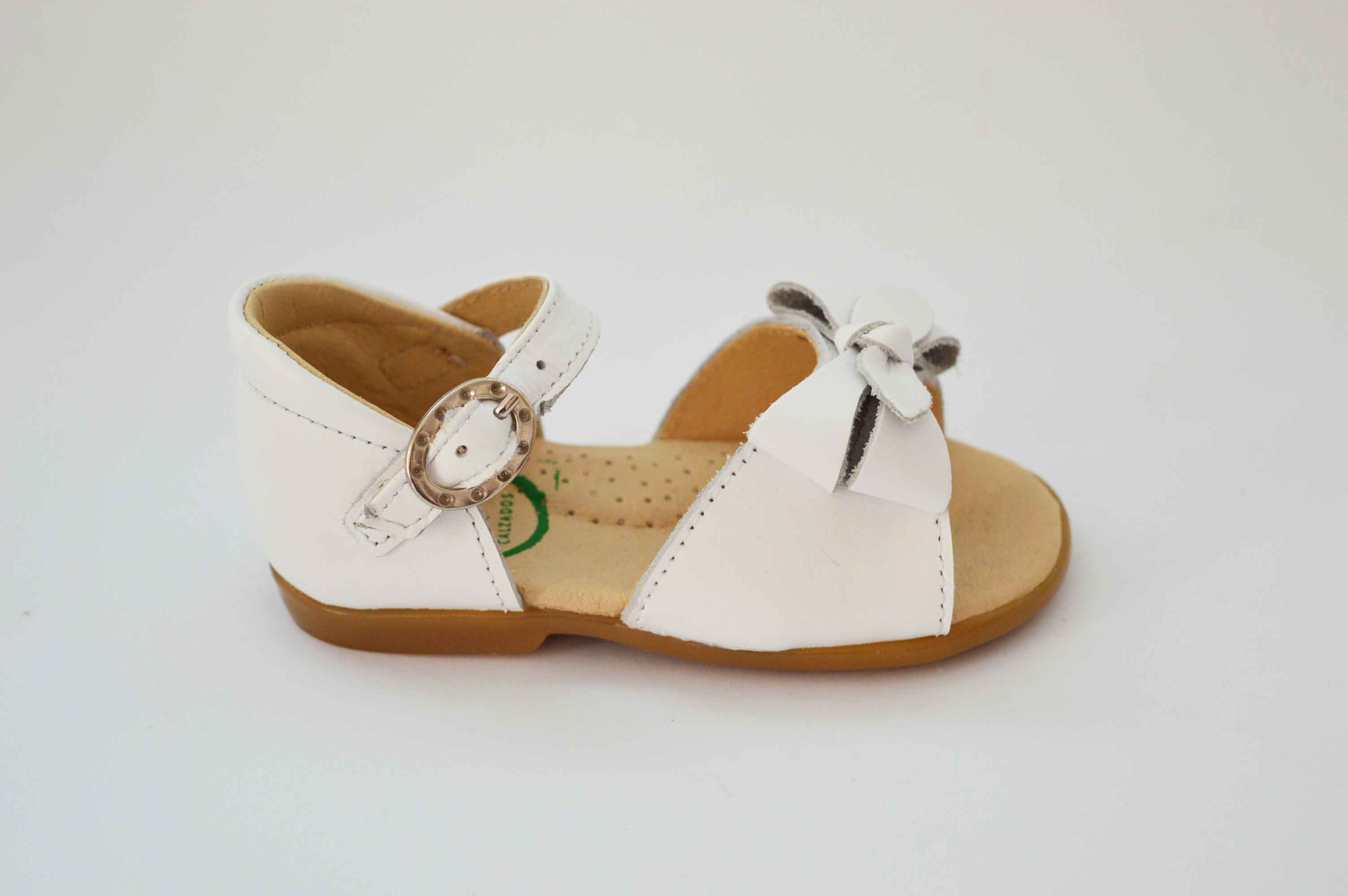 Disponible con diferentes tipo de adorno y diferentes formas pero todas con hebilla para asegurar una buena sujeción y comodidad para el pie de tus niñas.
