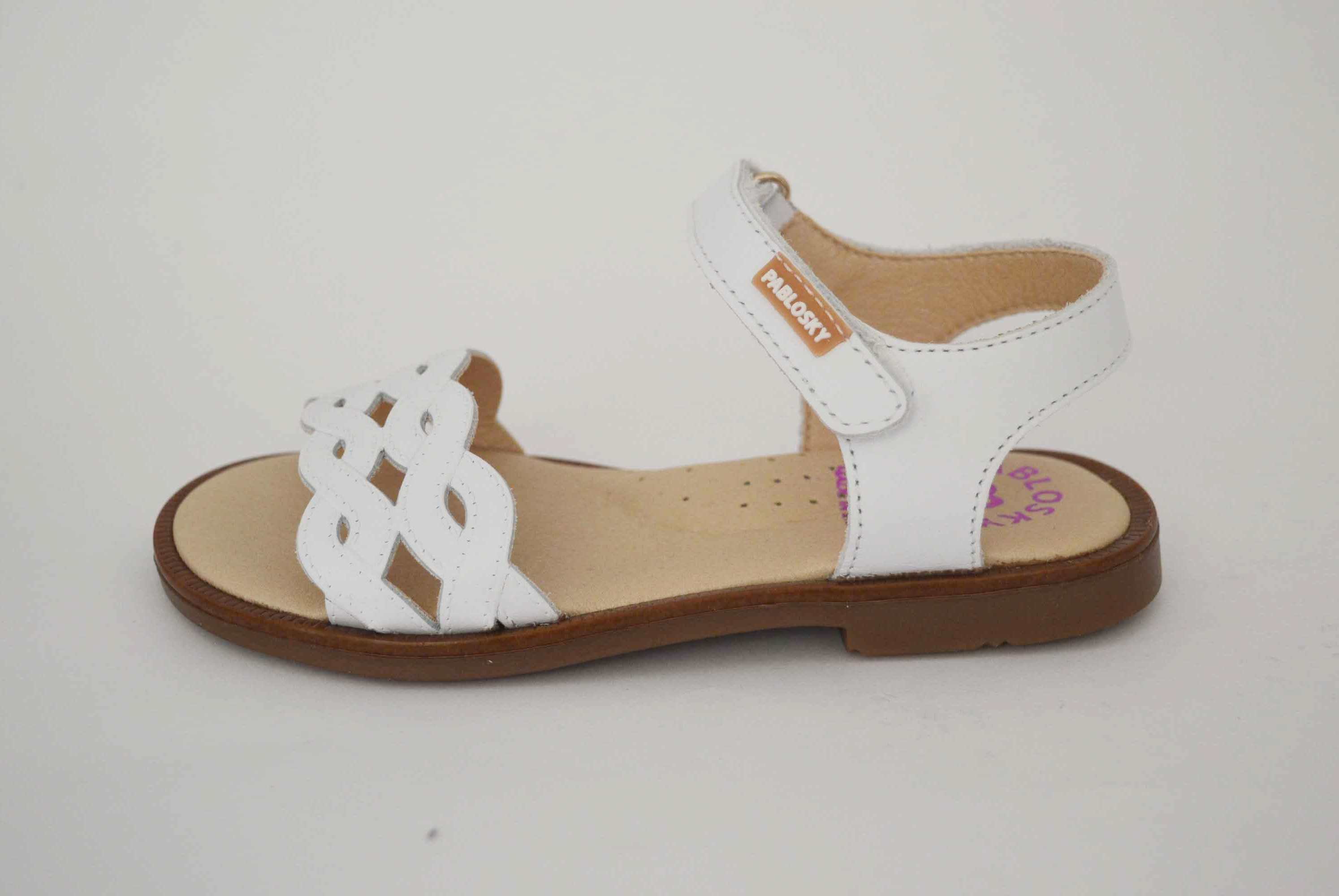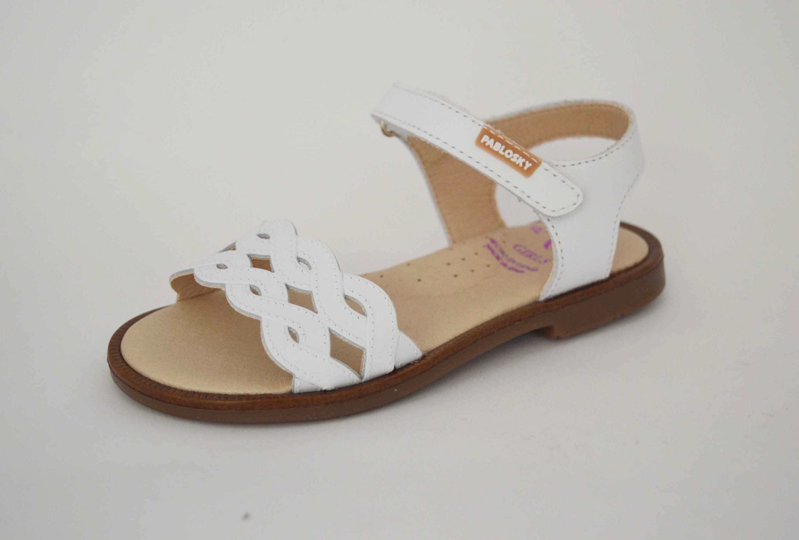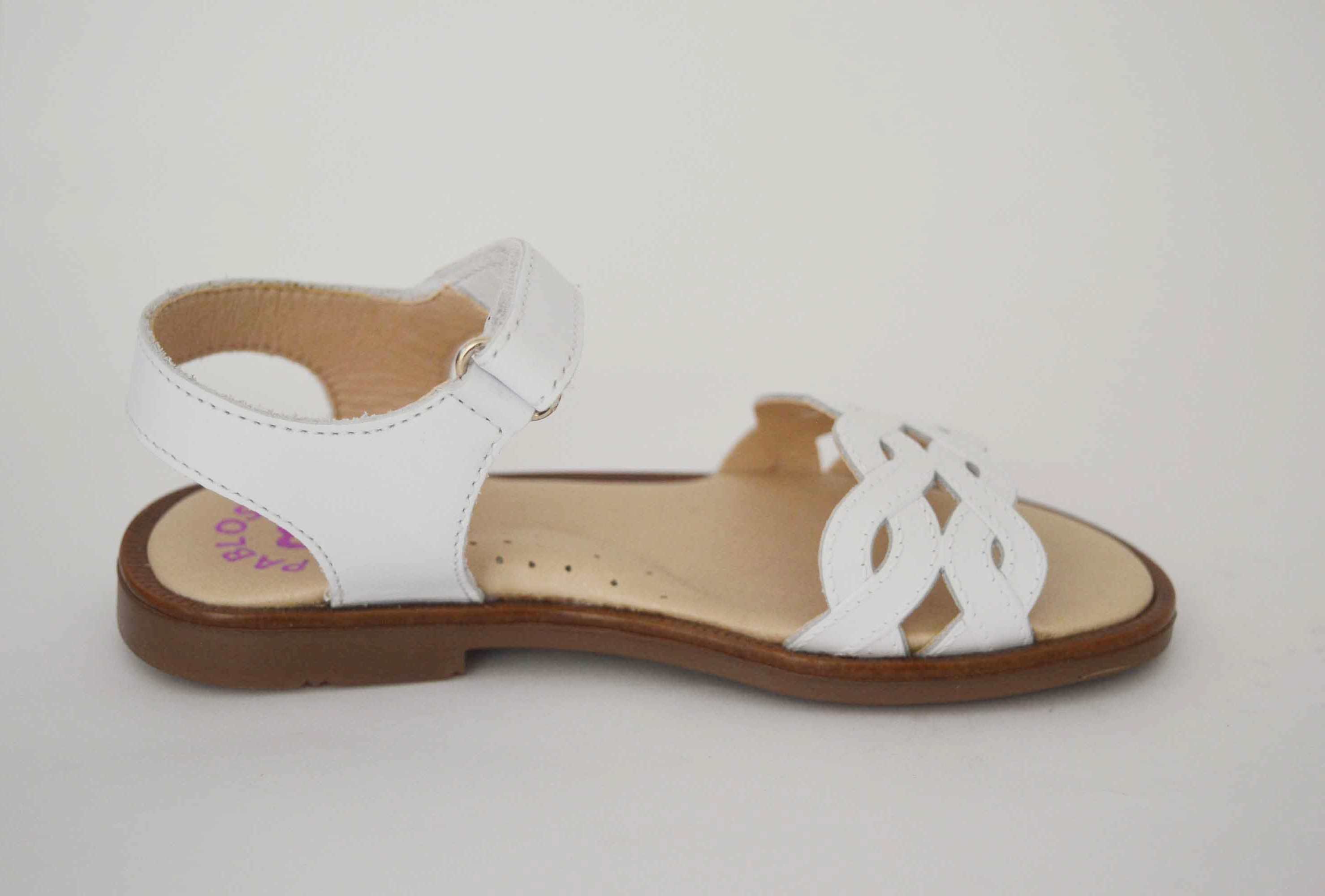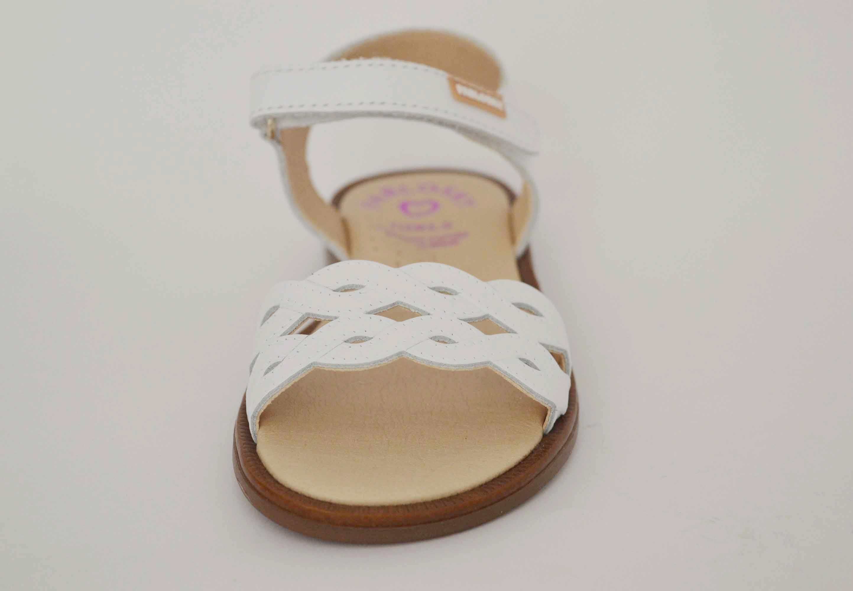 Sandalia blanca para niña, con el diseño clásico de trenza en la parte delantera. Con el piso de goma, y la parte superior de piel. Forro inTech.