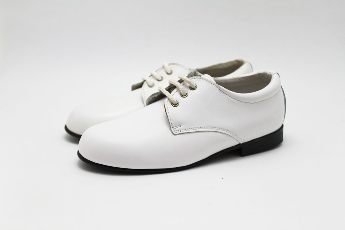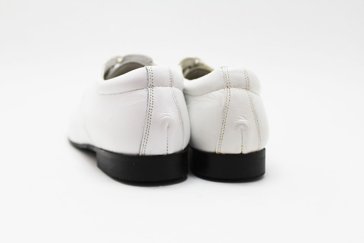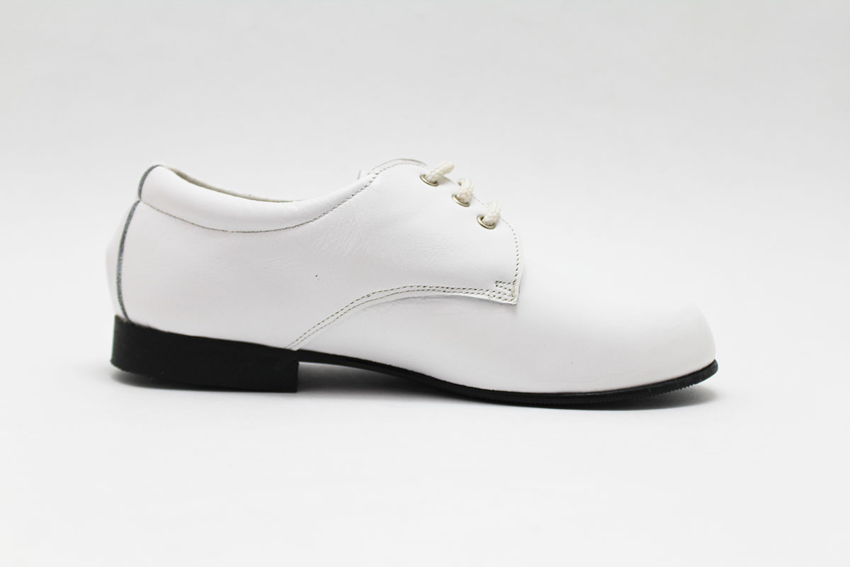 Zapato blucher blanco con cordones para niño. Ideal para usar como zapato de comunión para niño o para alguna ocasión especial en ceremonias como bodas o bautizos.