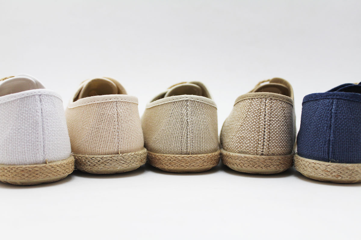 Disponible en 4 colores: blanco, beige, taupe y azul azafata. También disponible el mismo modelo de alpargata con cordones tipo blucher pero en un tejido de lino más fino, en un tono beige muy bonito:
