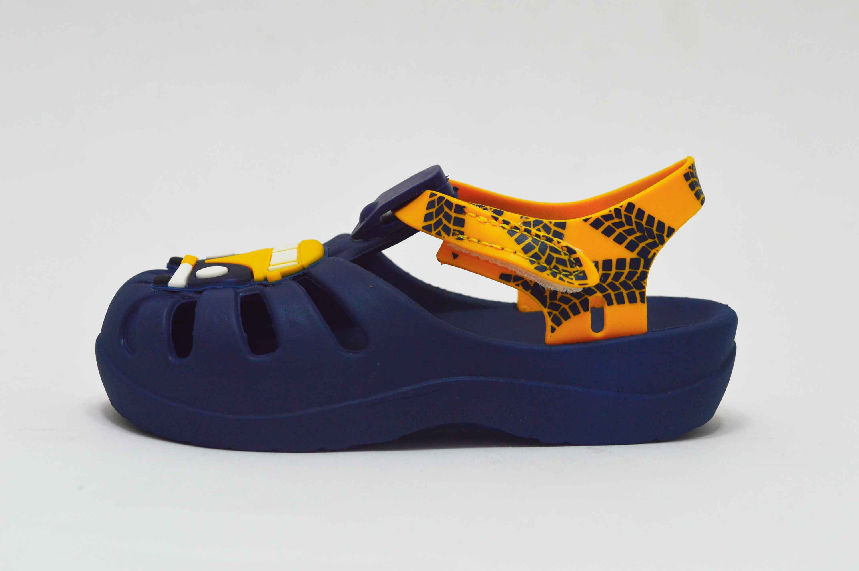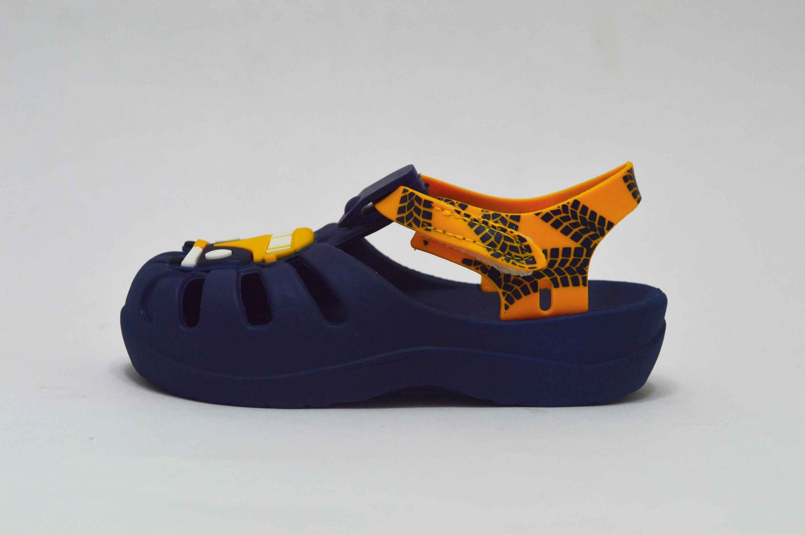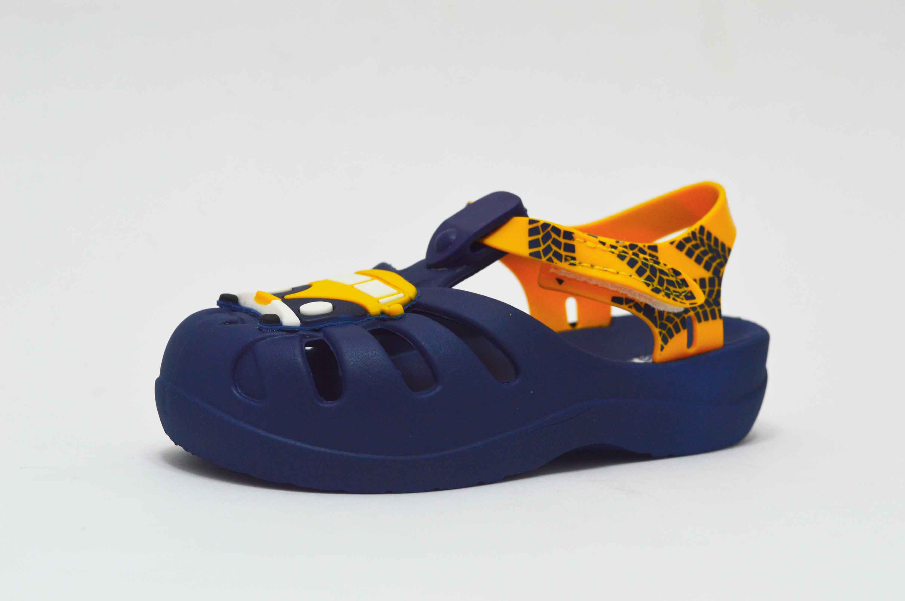 Cangrejeras de la marca Ipanema, de muy buena calidad. Es un imprescindible cada verano, además con diseño nuevo cada año. Este modelo trae un autobus combinando tonos amarillos con el azul marino.