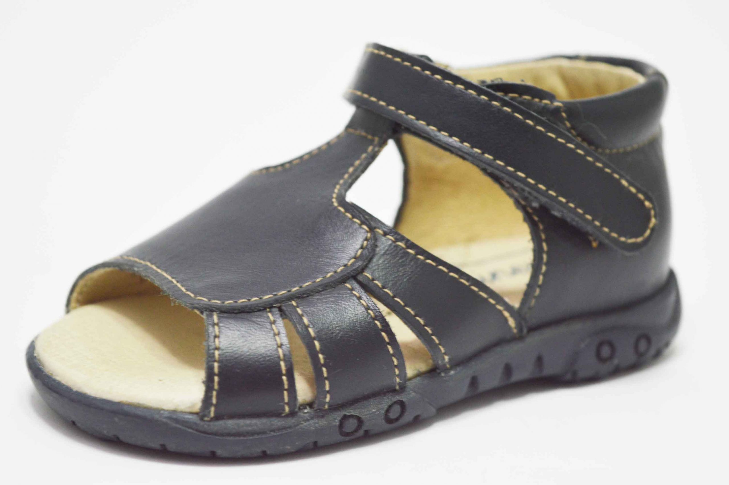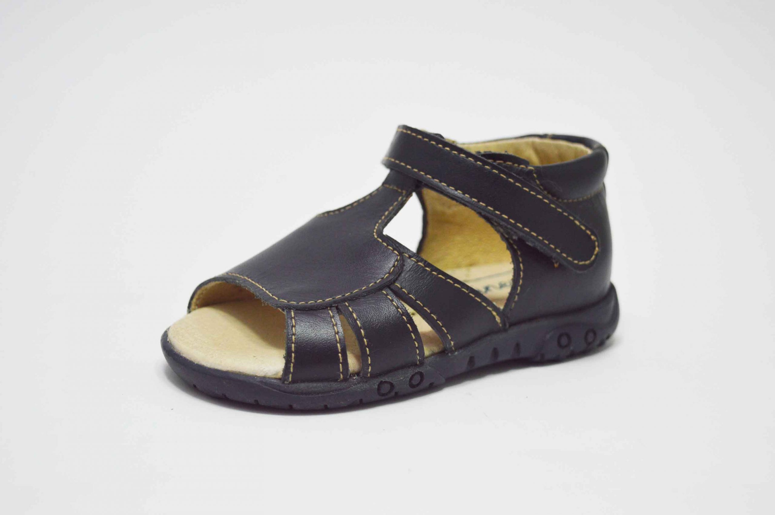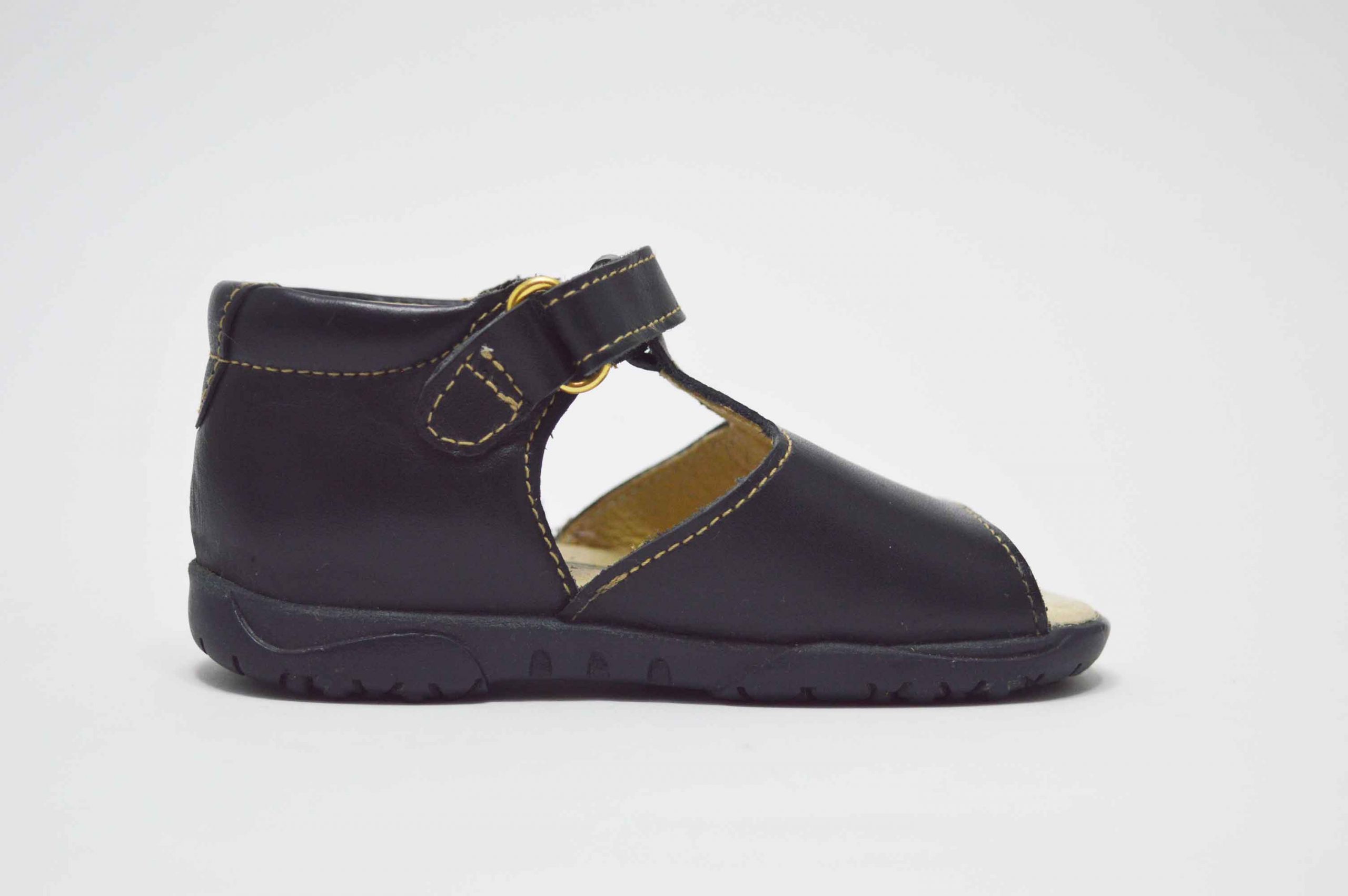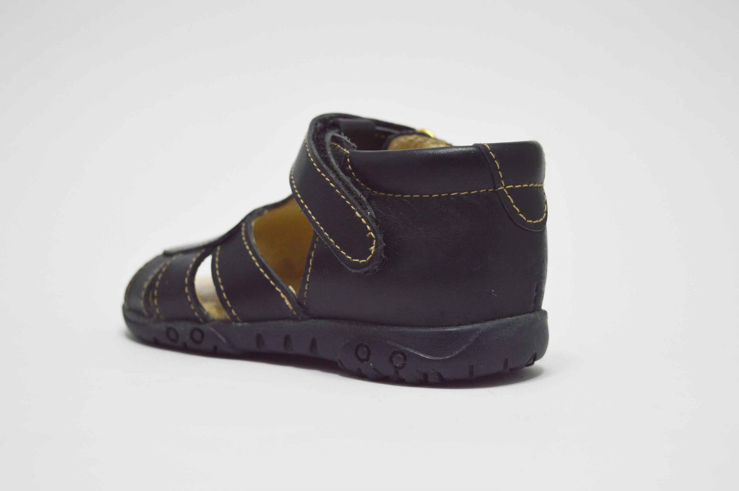 Sandalias con talón cerrado, muy cómodas y adaptadas para los niños. Tiene un cierre adherente ajustable a los pies de todos los niños. Disponible en color azul marino, un tono que es muy combinables con todo. Como siempre, hecho en España.