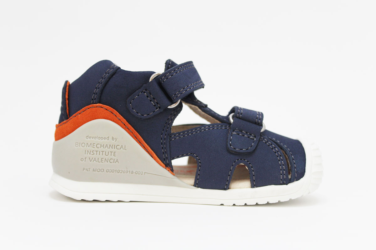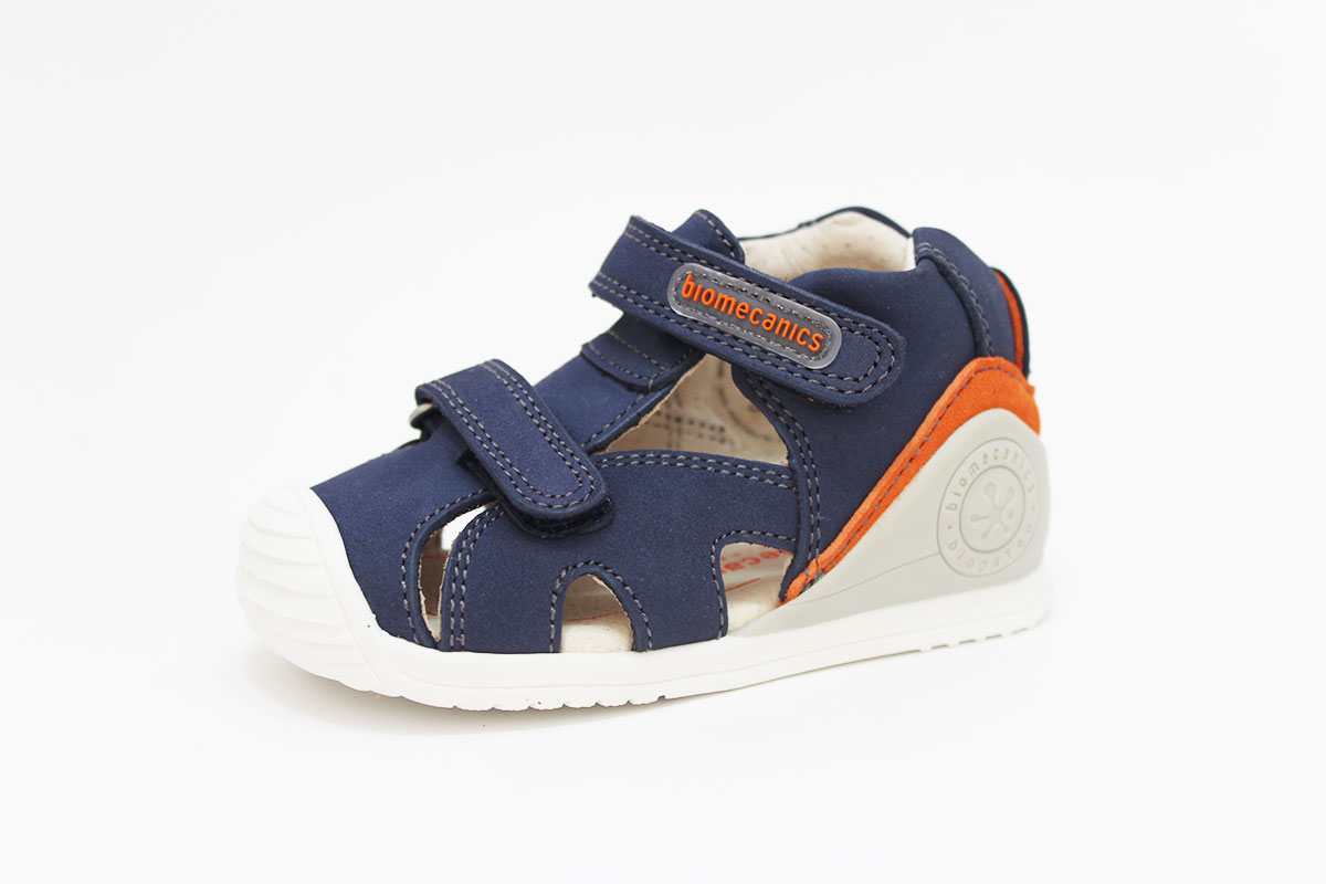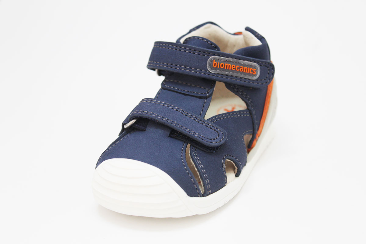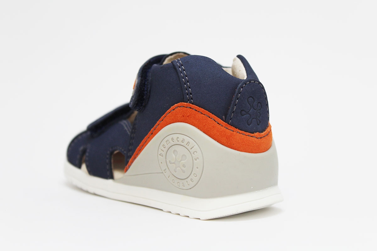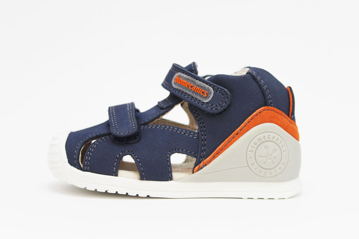 Sandalias de la marca Biomecanics para niño. Con talón cerrado, muy cómodas, ergonómicas y adaptadas para los niños. Con la puntera reforzada, y como siempre, hecho en piel. Además, trae un doble cierre adherente ajustable, ideales para los pies más gorditos.