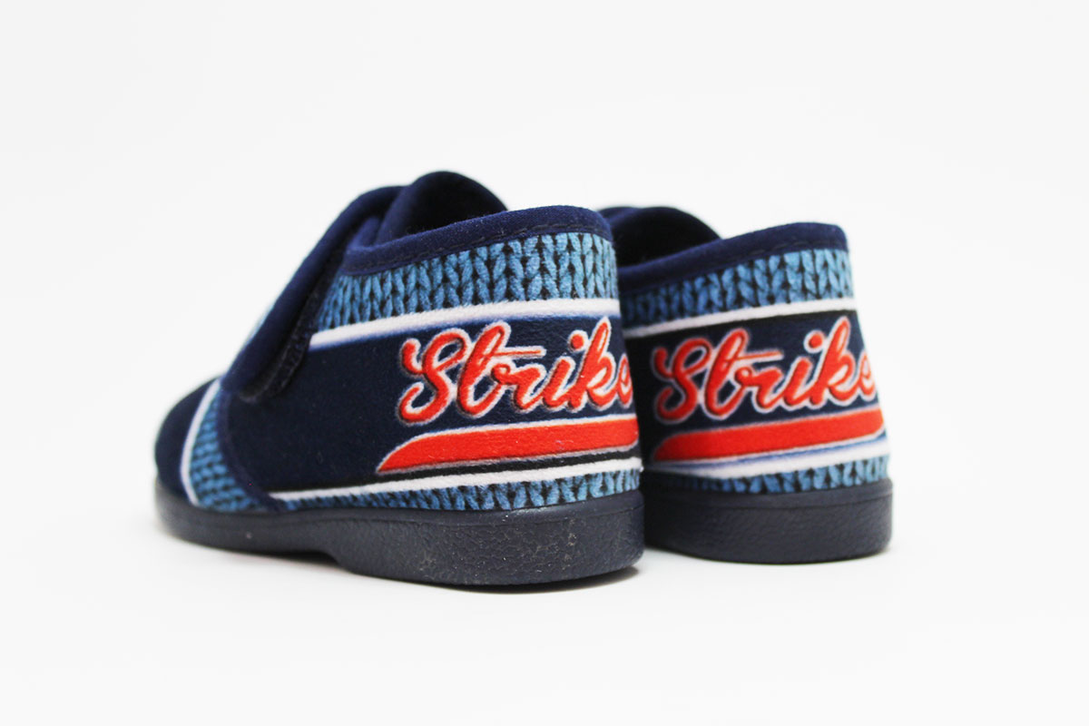 Zapatillas para estar en casa para niños, con cierre de tira adherente para que tengan una mayor autonomía. Con un diseño de ratoncito jugando a beisbol. Combinan con todos sus conjuntos y pijamas para estar por casa esta temporada.