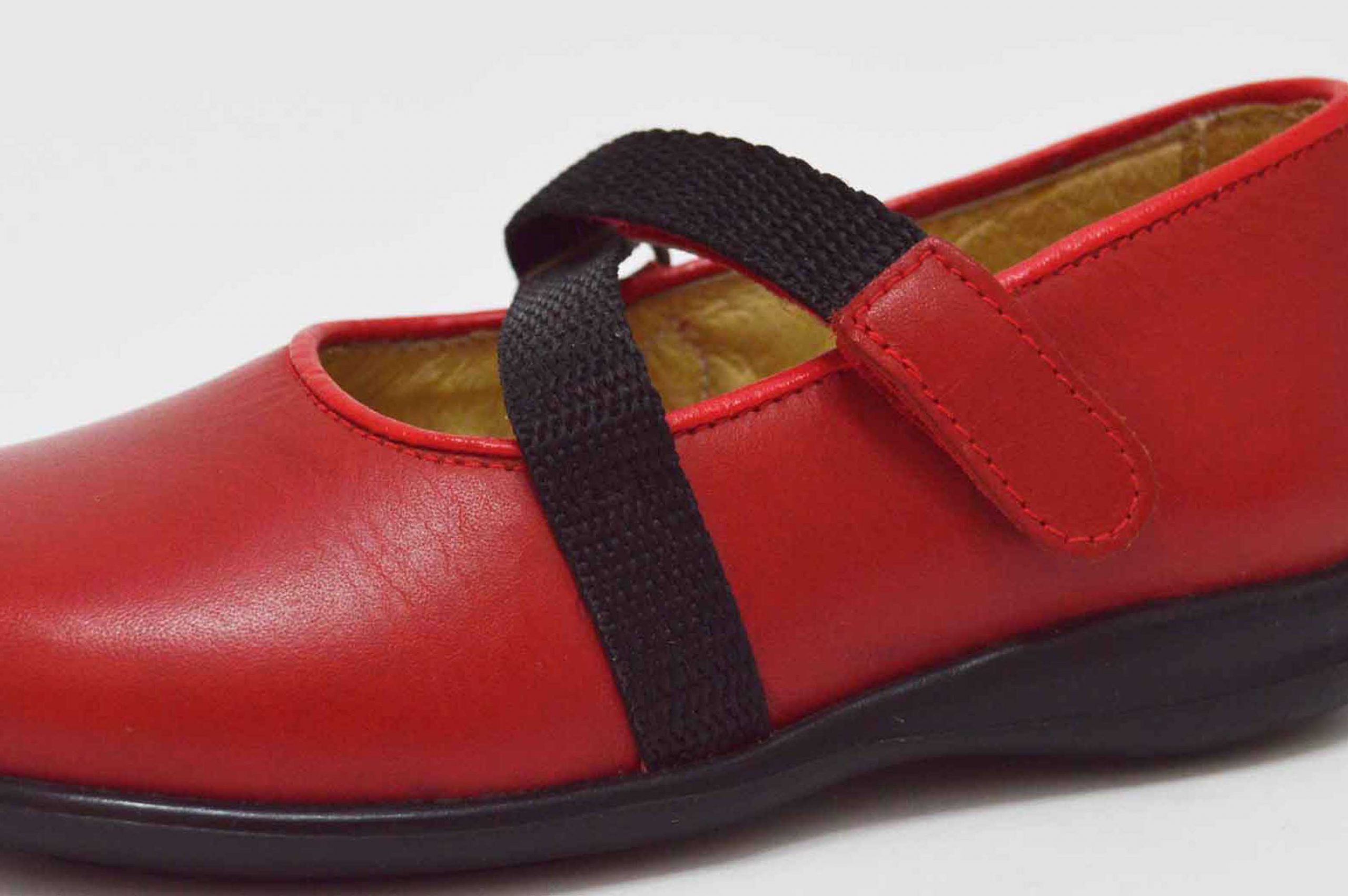 Merceditas con tiras cruzadas para niña. Un zapato ideal para usar como zapato colegial para niña, pero también para ocasiones más elegantes, donde tengan que ir más arregladitas. Cuenta con un original cierre de tira cruzada. Este cierre es de tela en color negro combinado con cada color en el que está disponible.