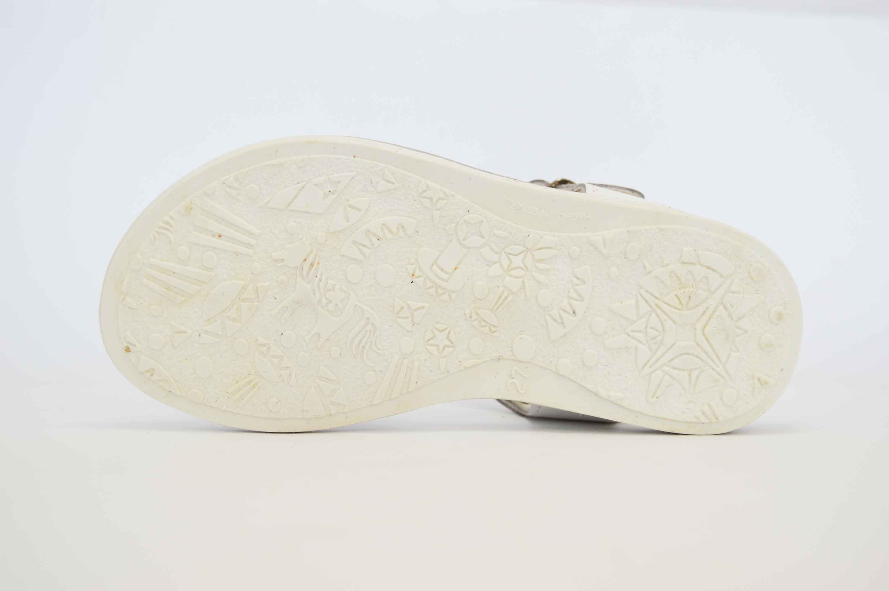 Sandalia bonita, informal y muy cómoda para el día a día. Lleva tiras de piel natural en la pala con estrellitas en color plata y blanco, la planta es acolchada y la suela de goma antideslizante. Esta fabricado 100% en piel natural.