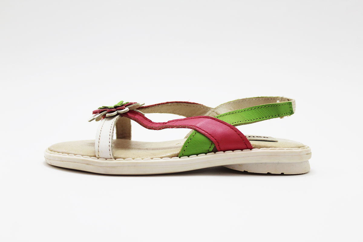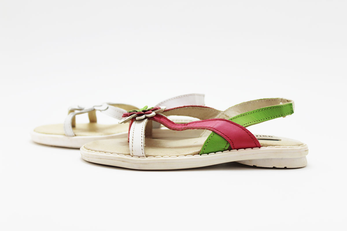 Sandalias muy cómodas, gracias a la suela blandita. Sandalia con forma de estrella, en dos colores, en fuxia y pistacho, combinación muy alegre, y en plata y blanco, un poco más sencilla.